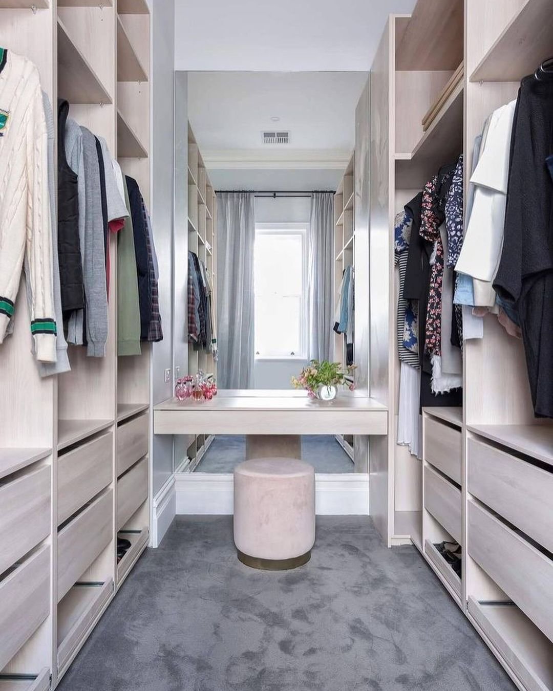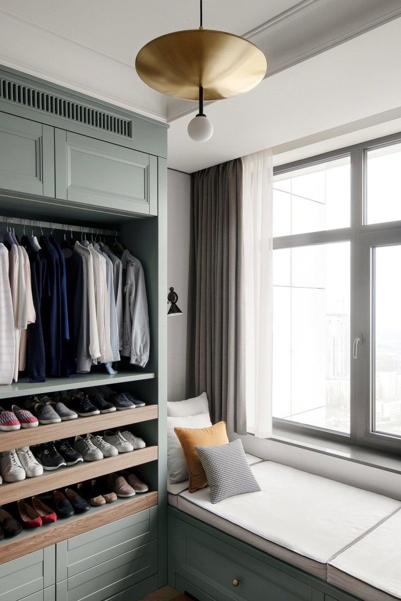 Интерьер гардеробной с окном