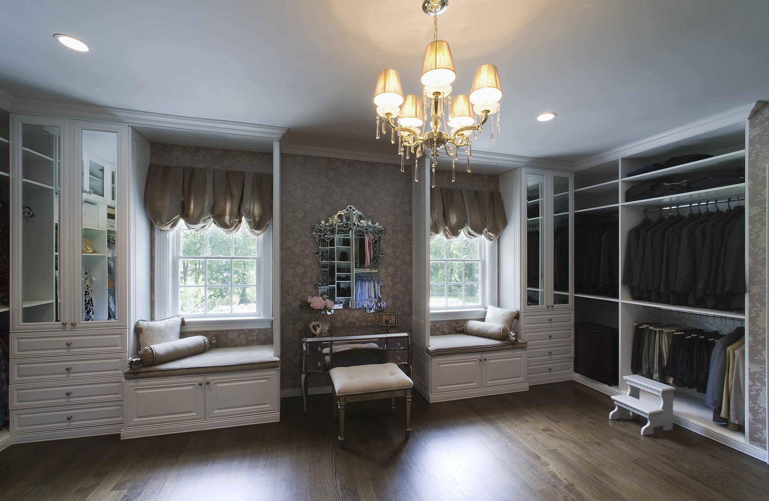 Гардеробная с двумя окнами