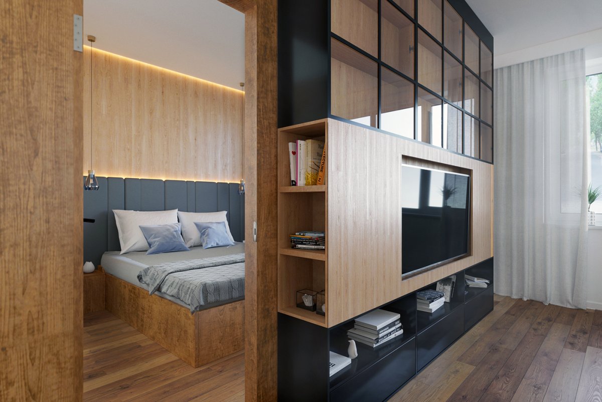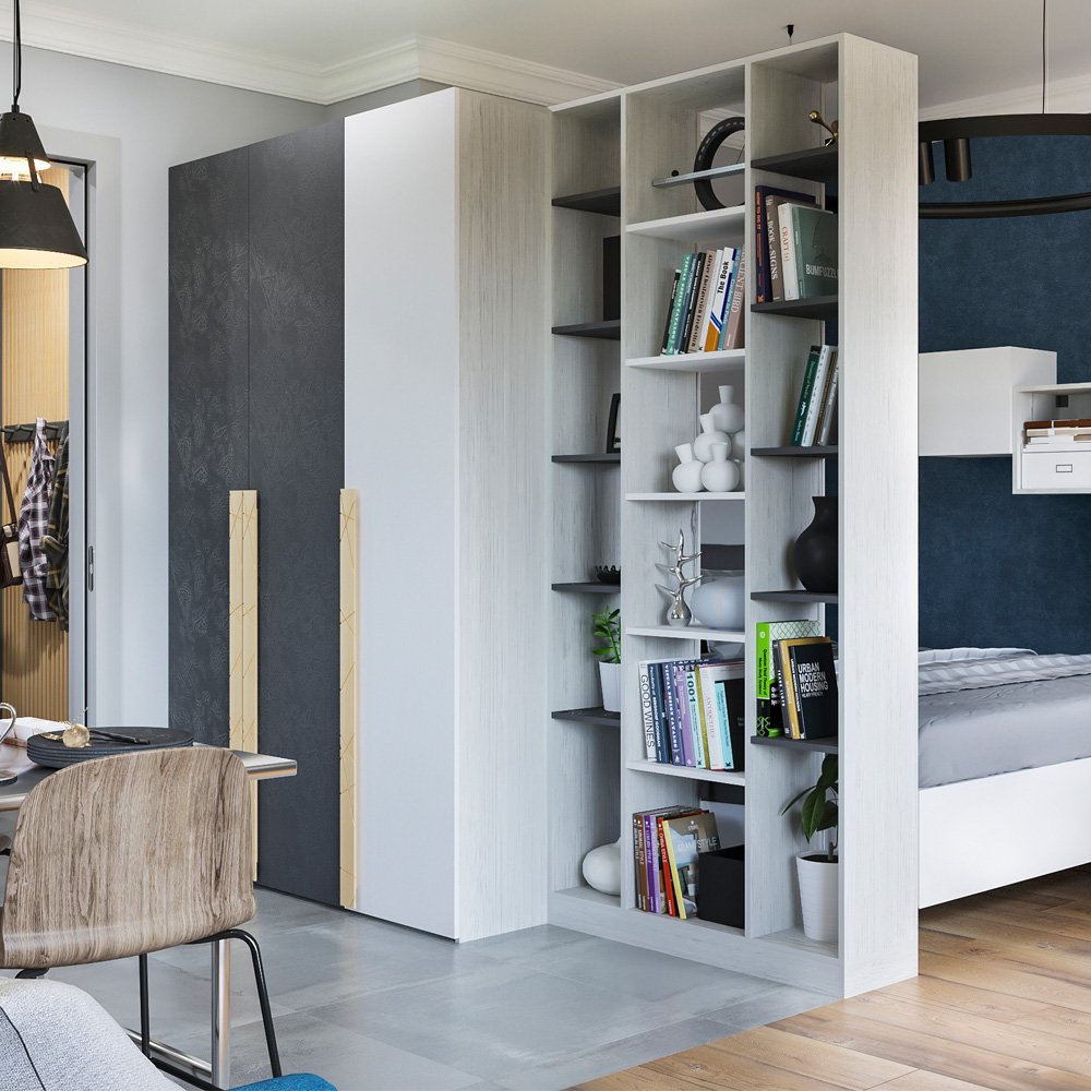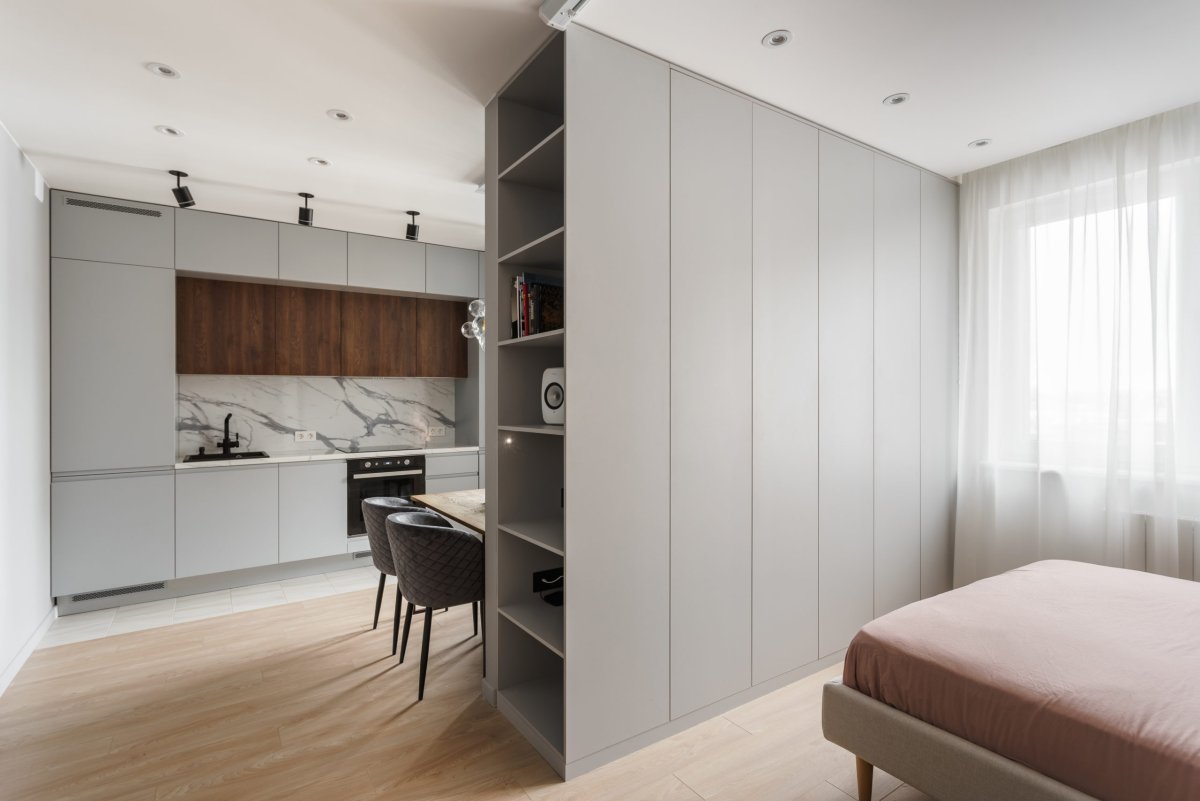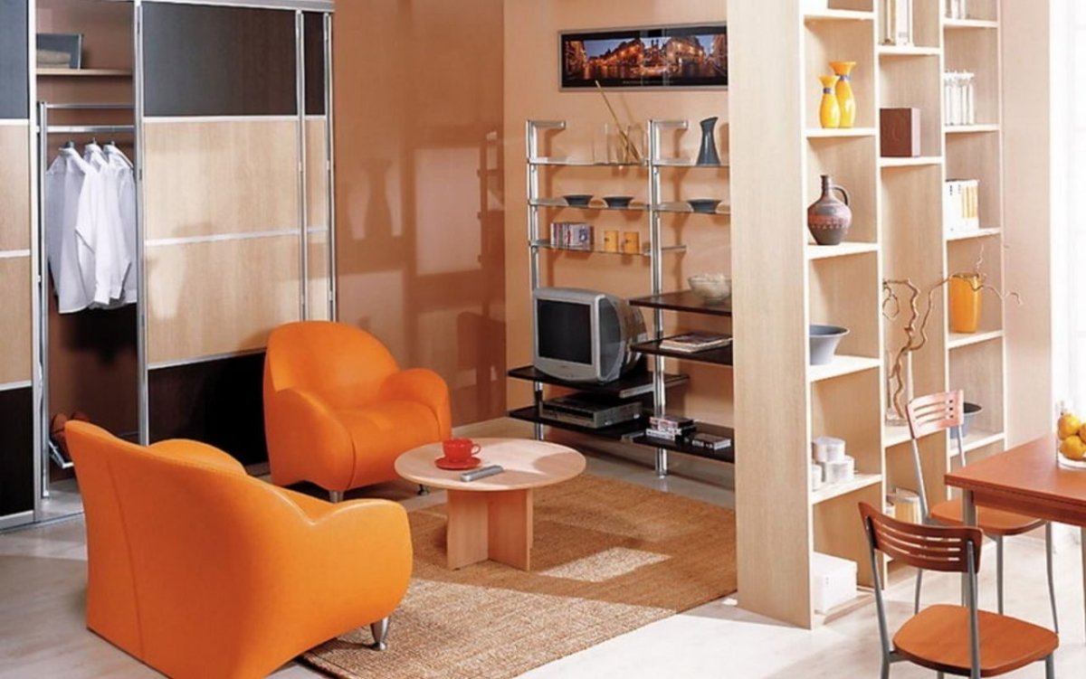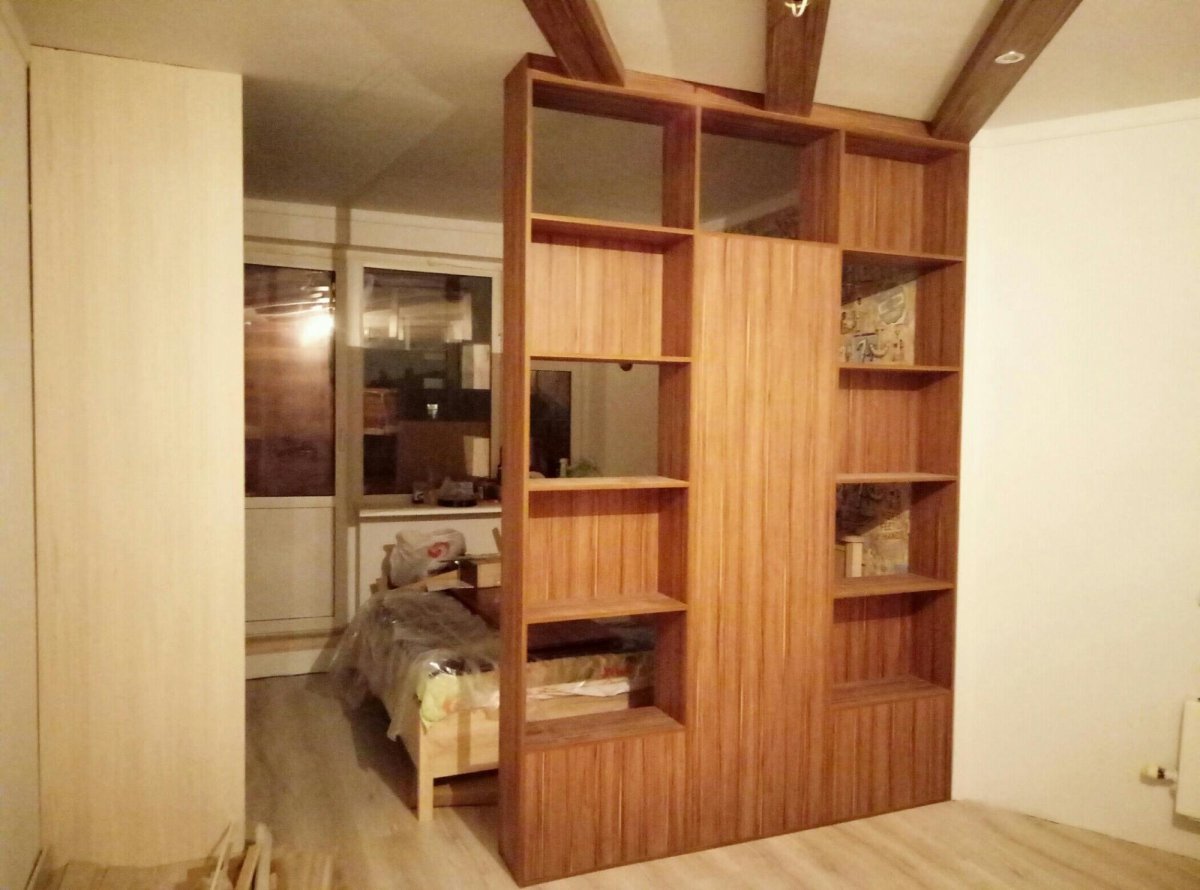 Зонирование комнаты 14 кв.м перегородкой шкафом