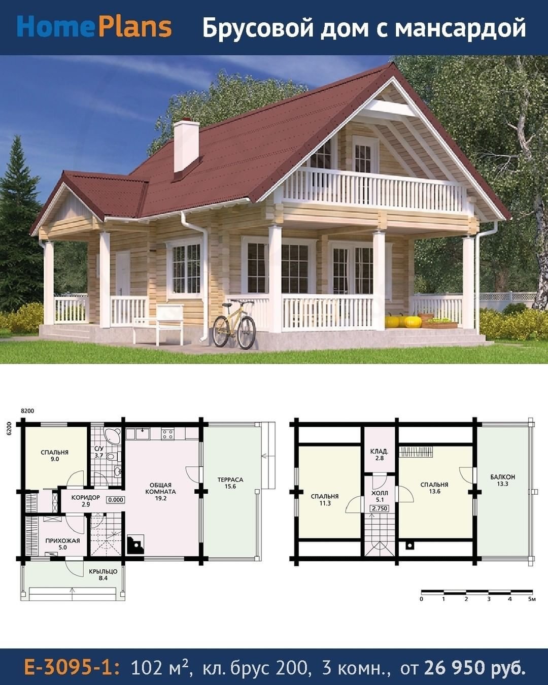 Дом 80 кв.м двухэтажный с мансардой из газобетона