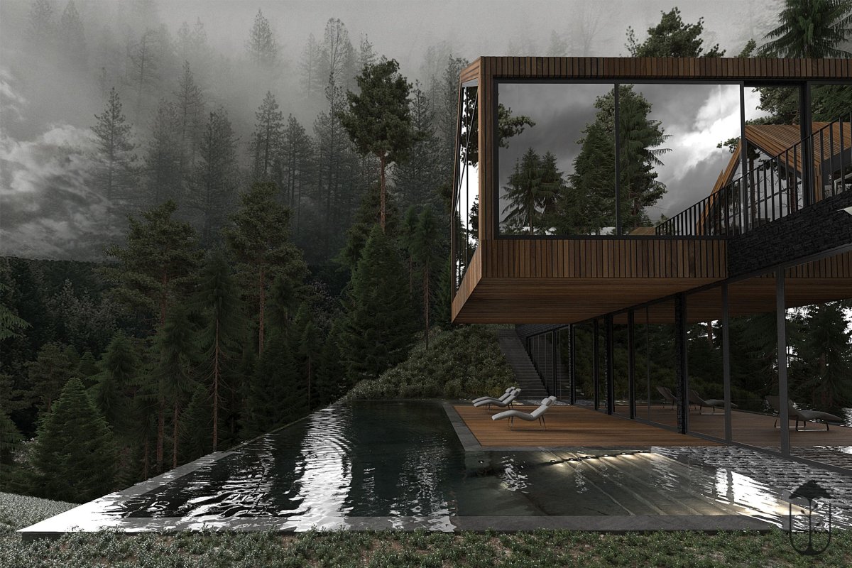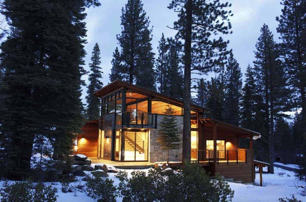 Дома в лесу с панорамными окнами