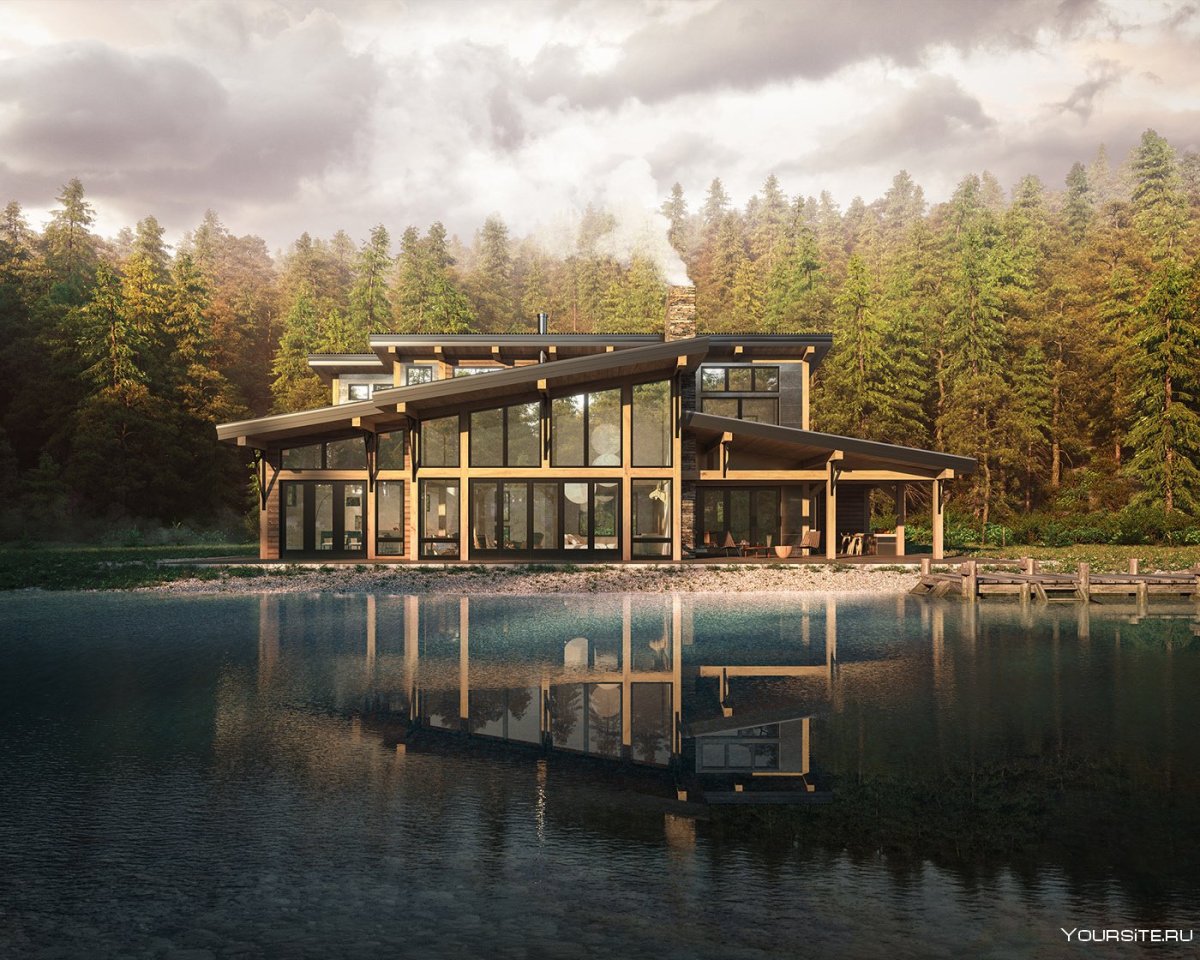 Современный дом у озера