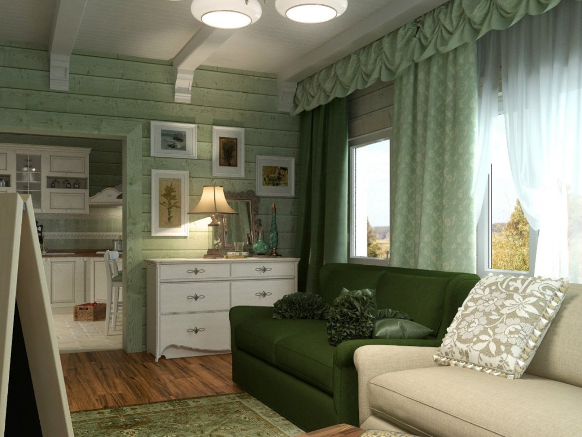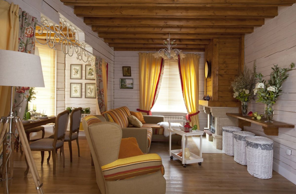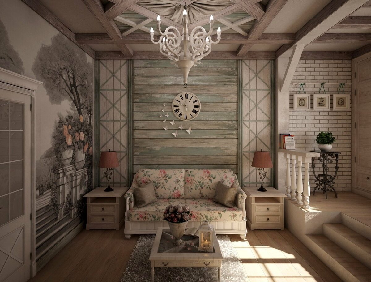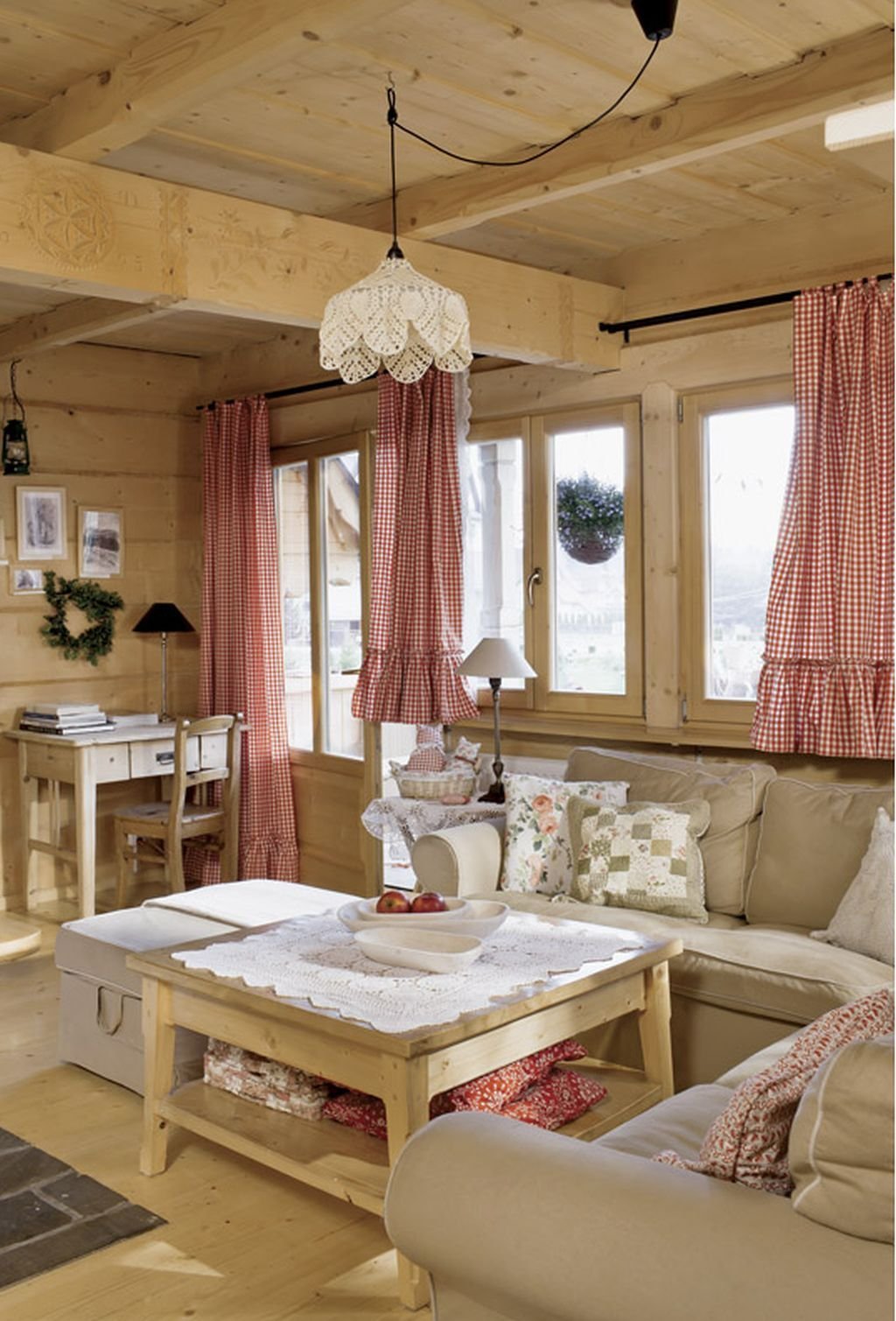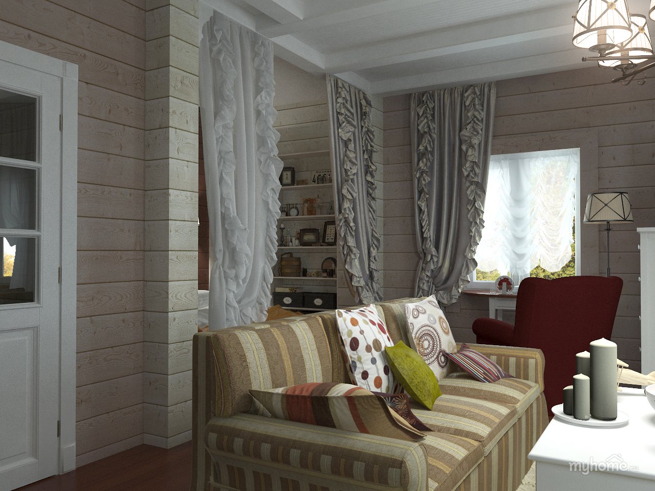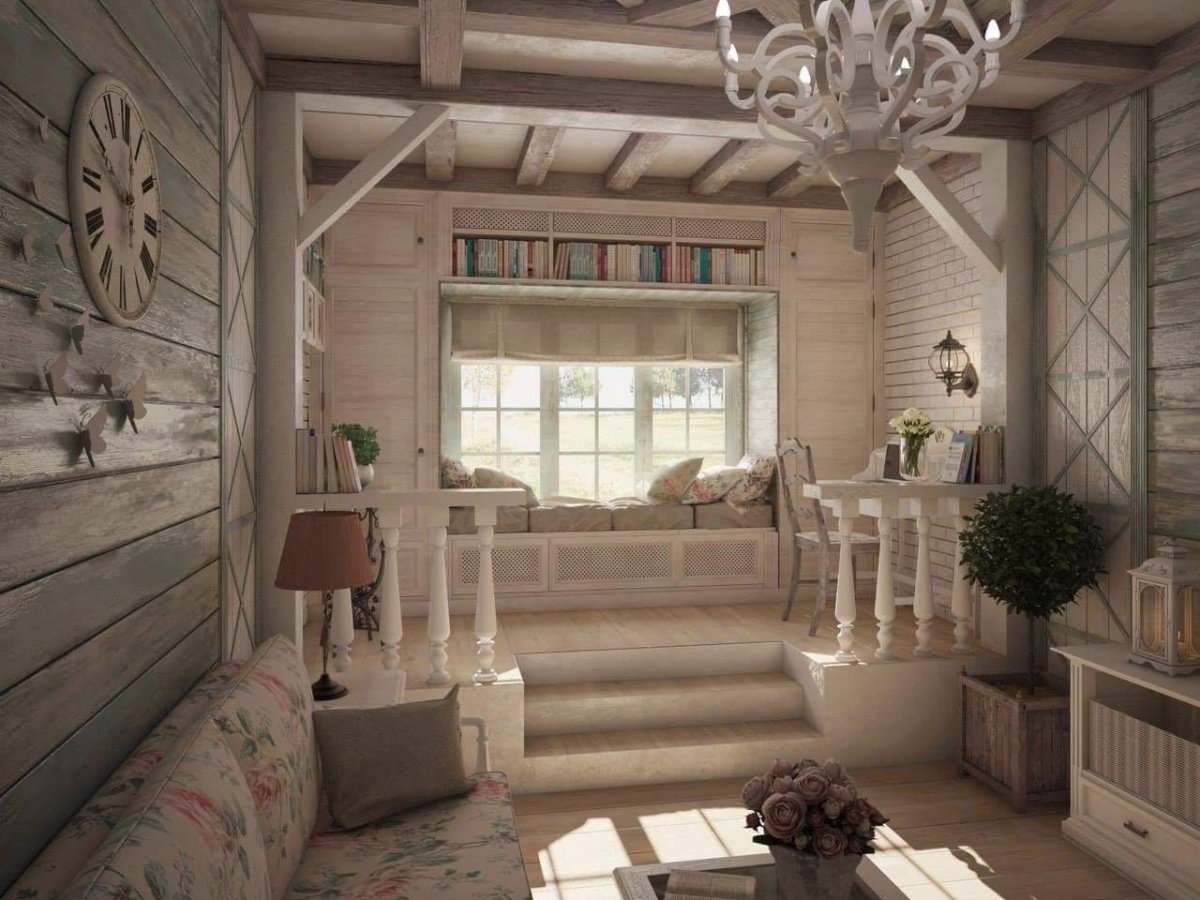 Небольшая гостиная в стиле Прованс в деревянном доме