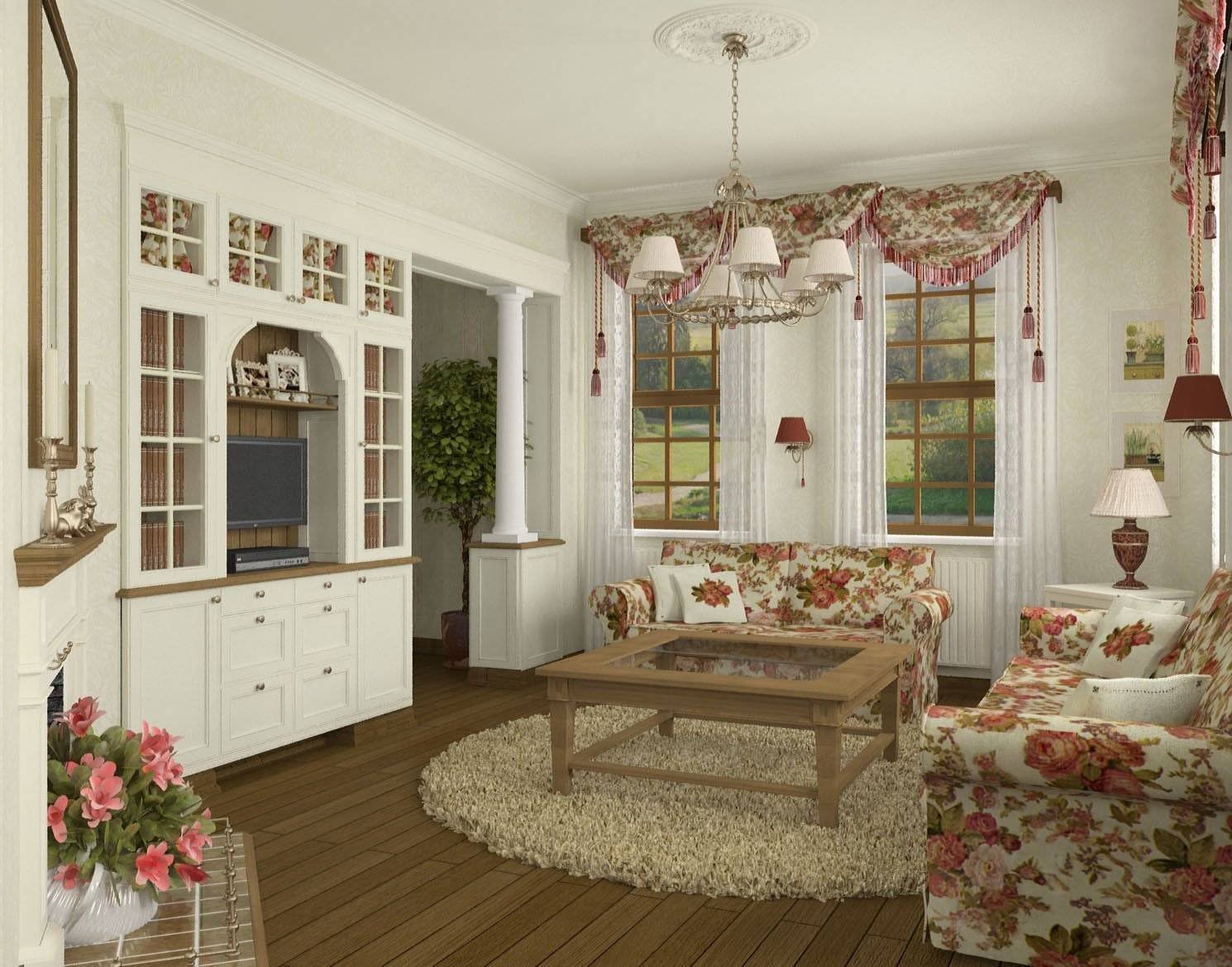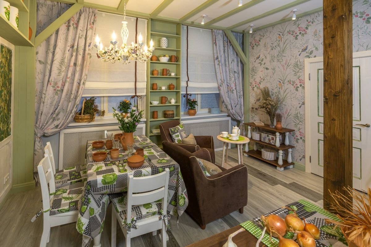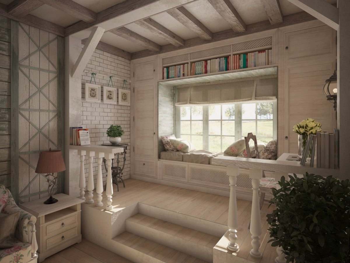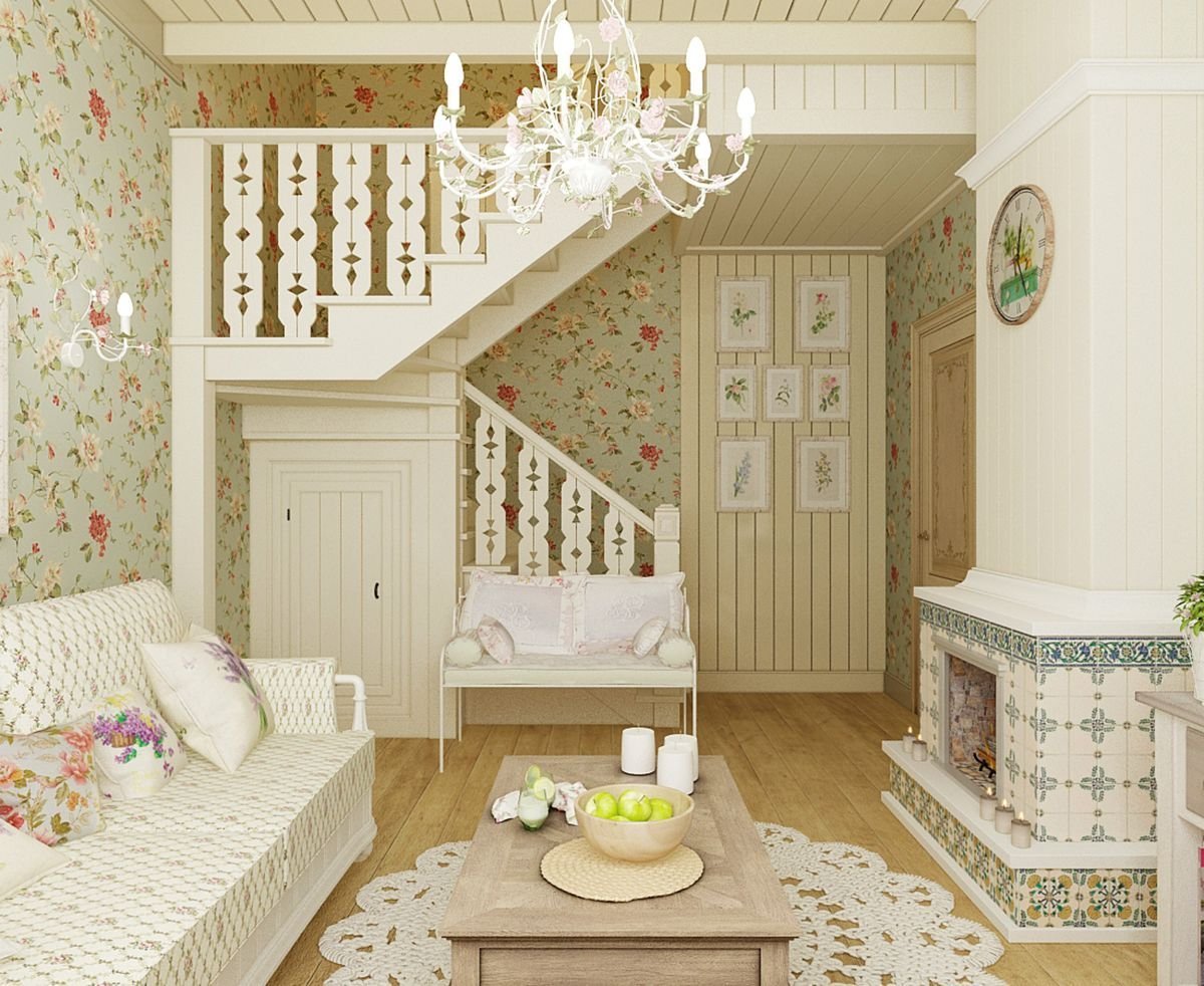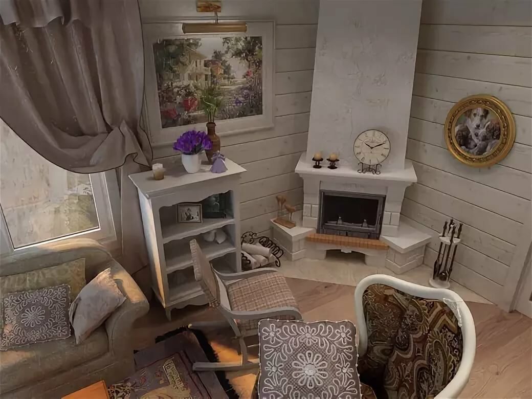 Небольшая гостиная в стиле Прованс в деревянном доме