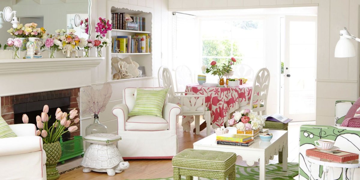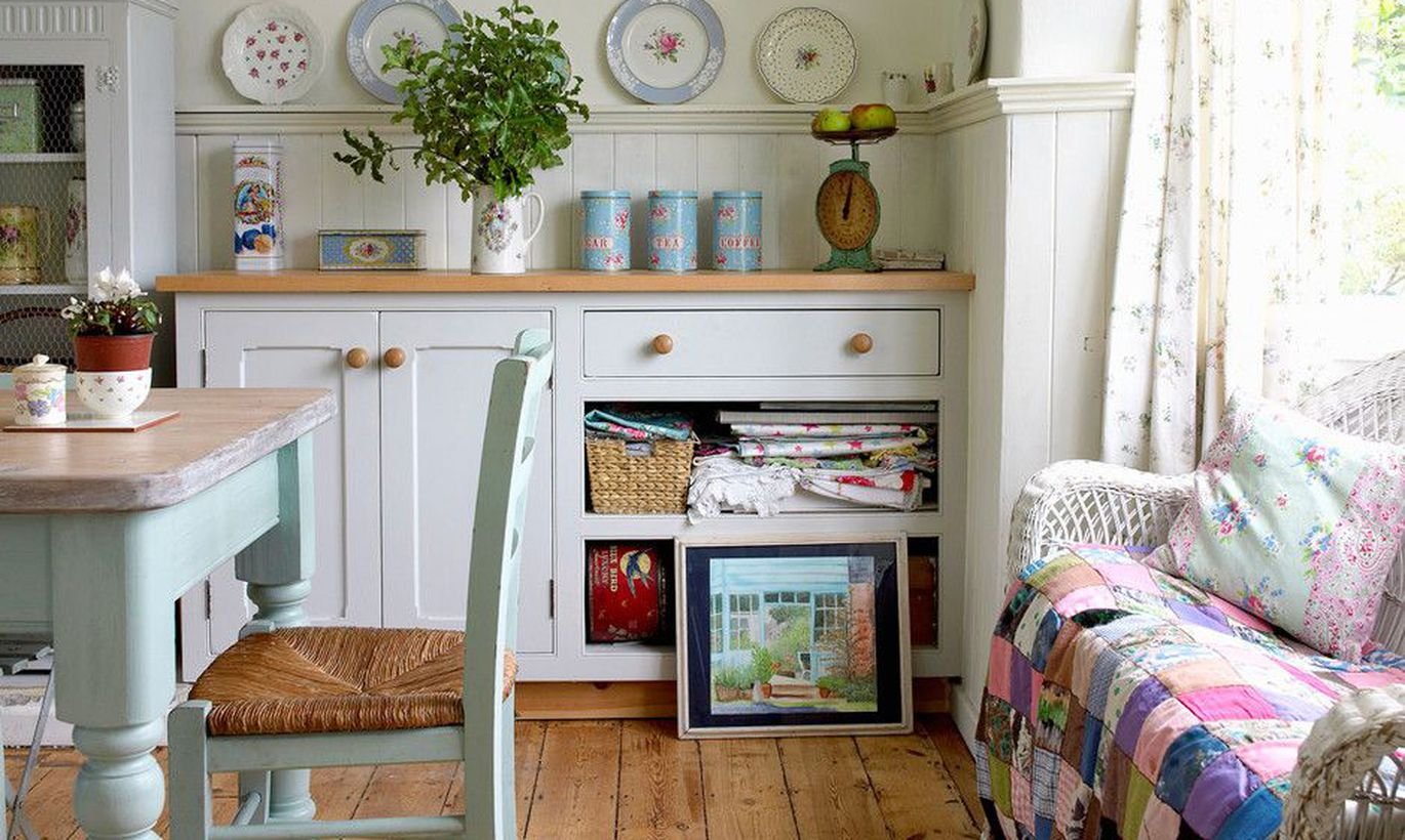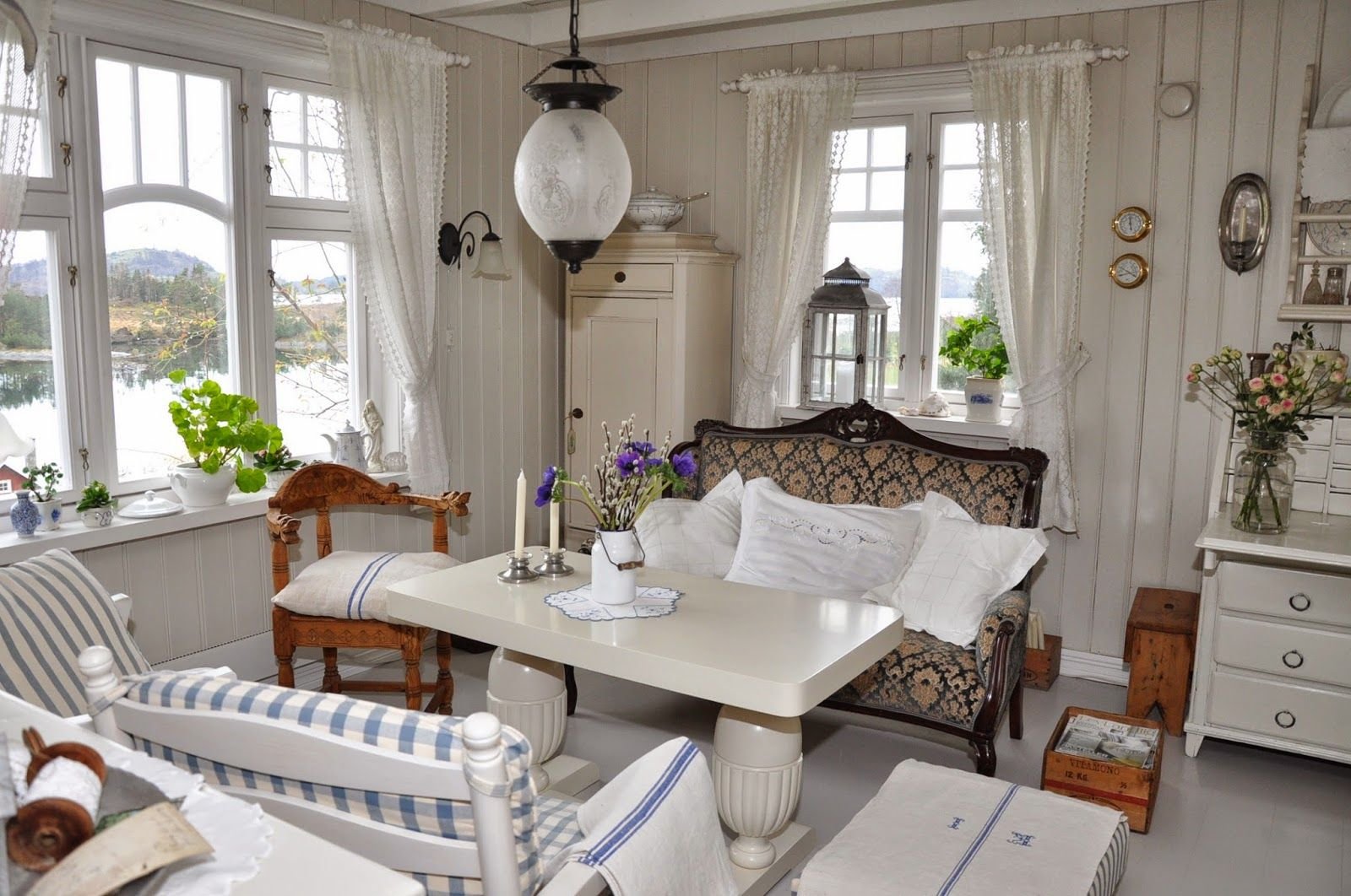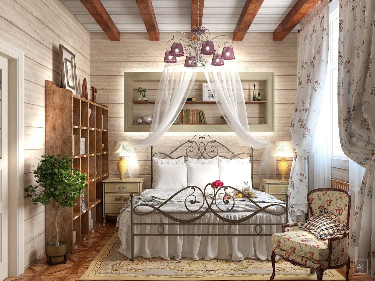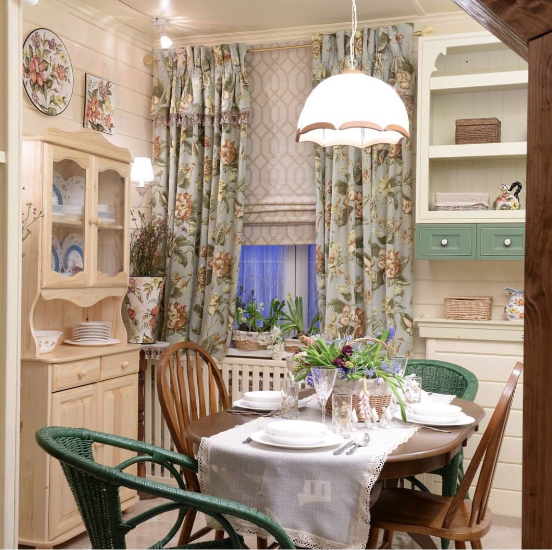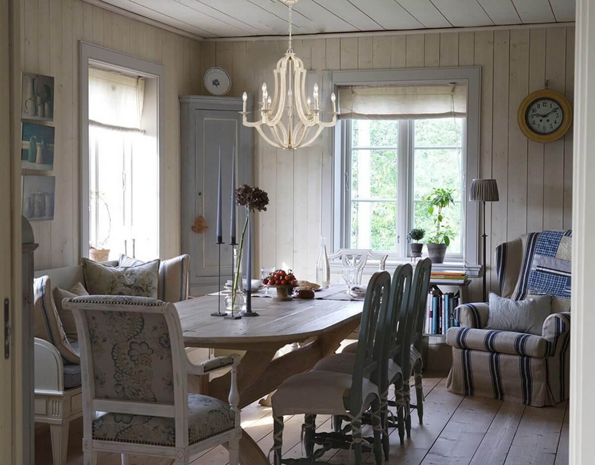Небольшая гостиная в стиле Прованс в деревянном доме