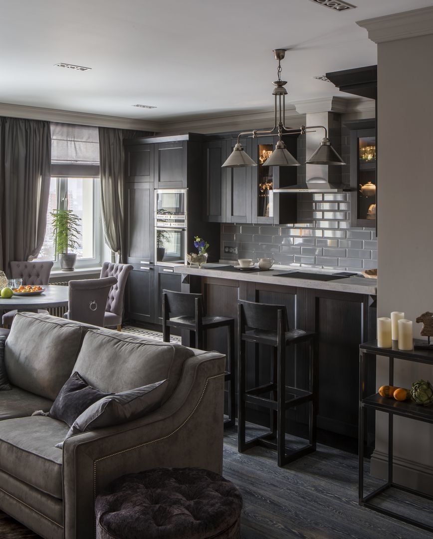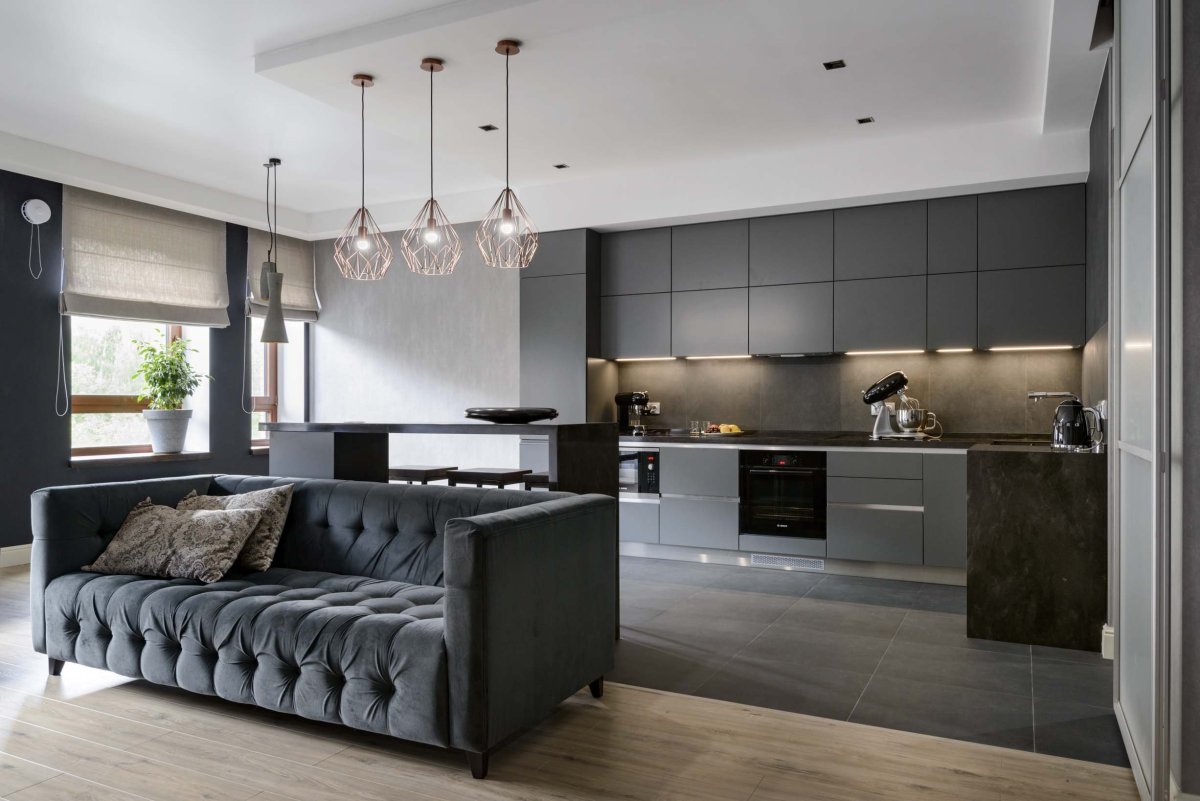 Кухни гостиные в серых тонах
