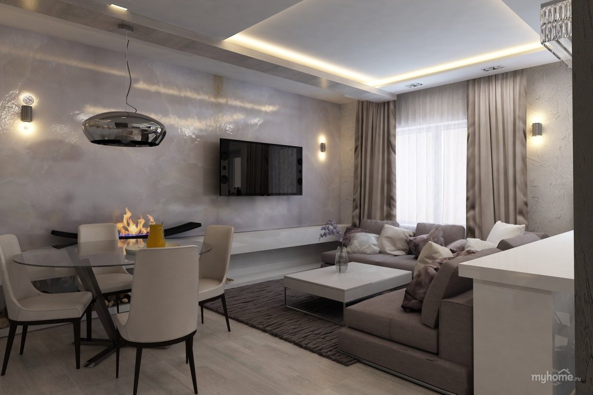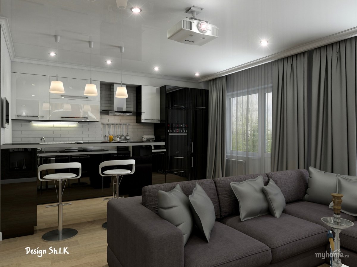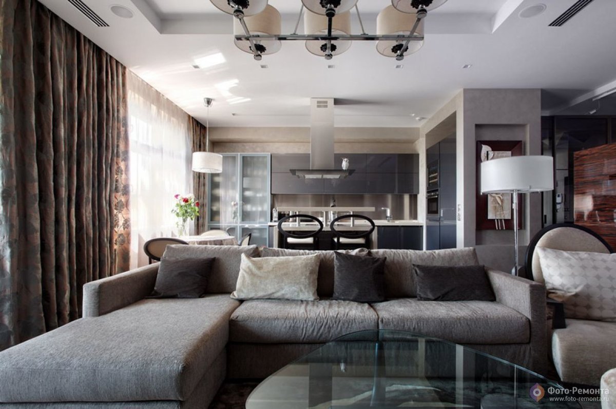 Интерьер кухни гостиной 60 кв м