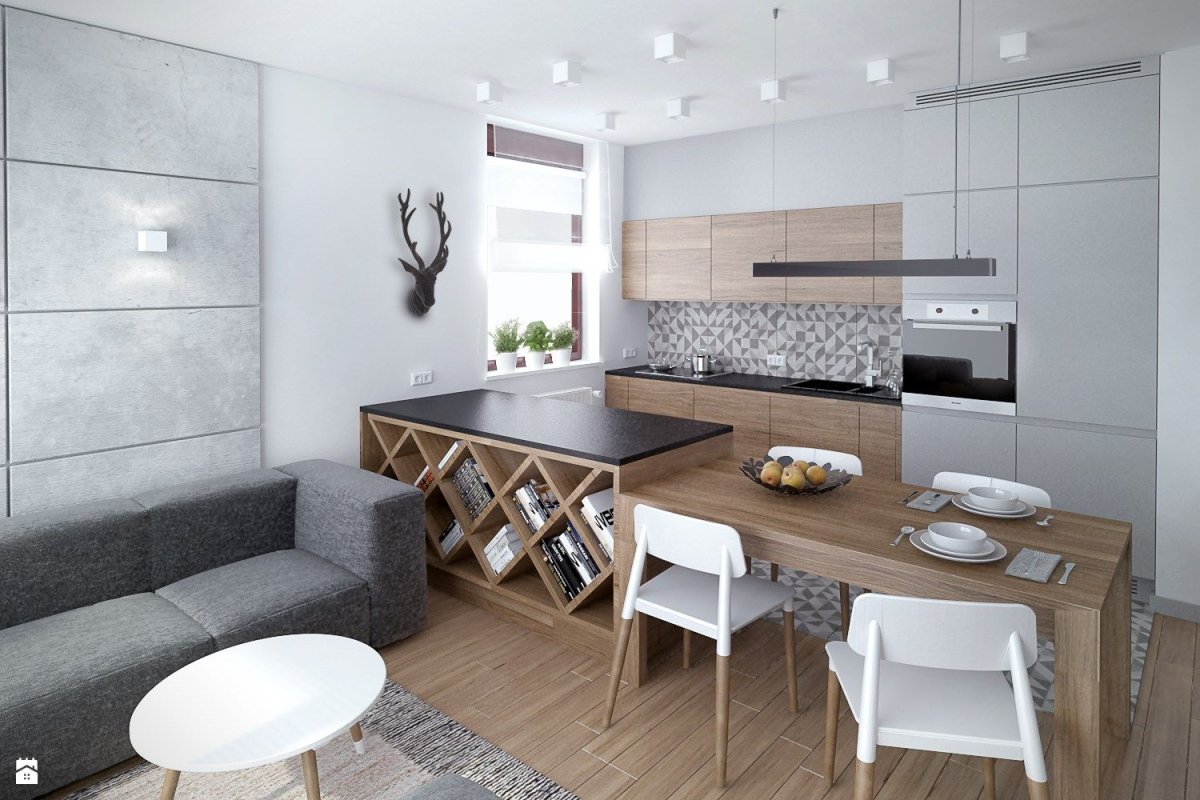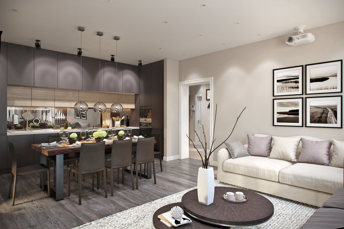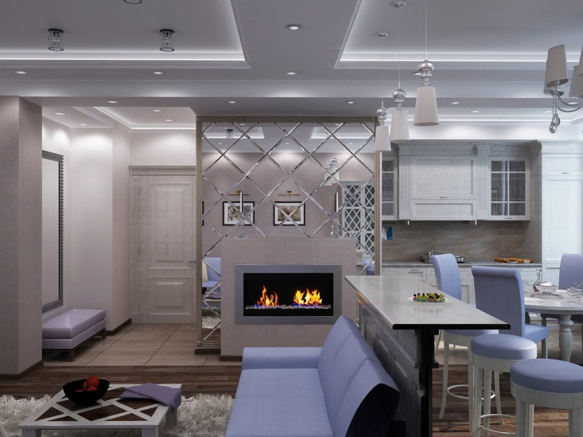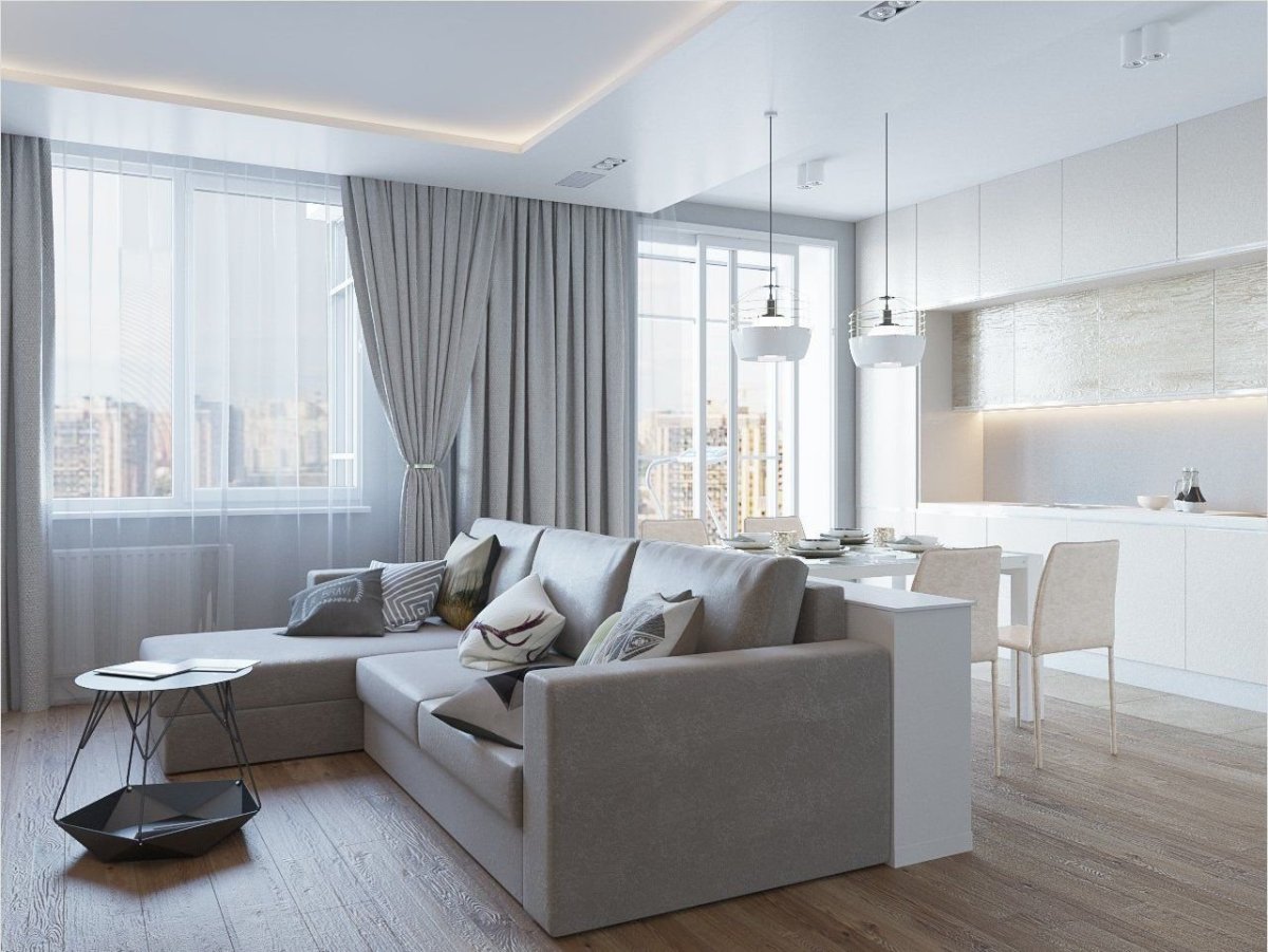 Интерьер кухни гостиной 60 кв м
