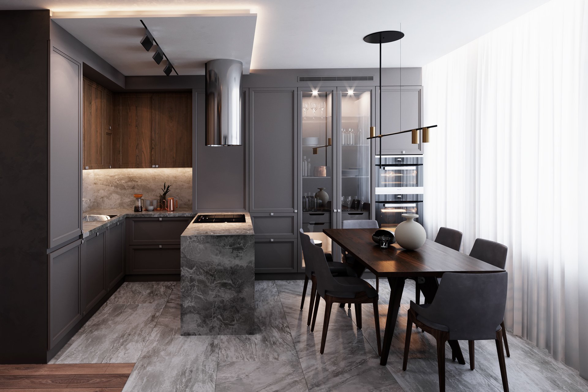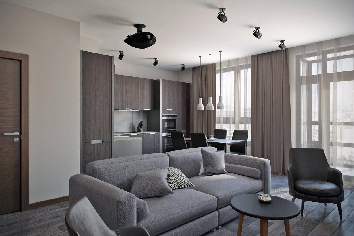 Кухня гостиная в серых тонах