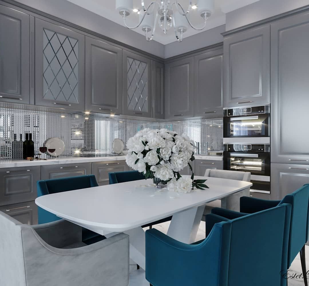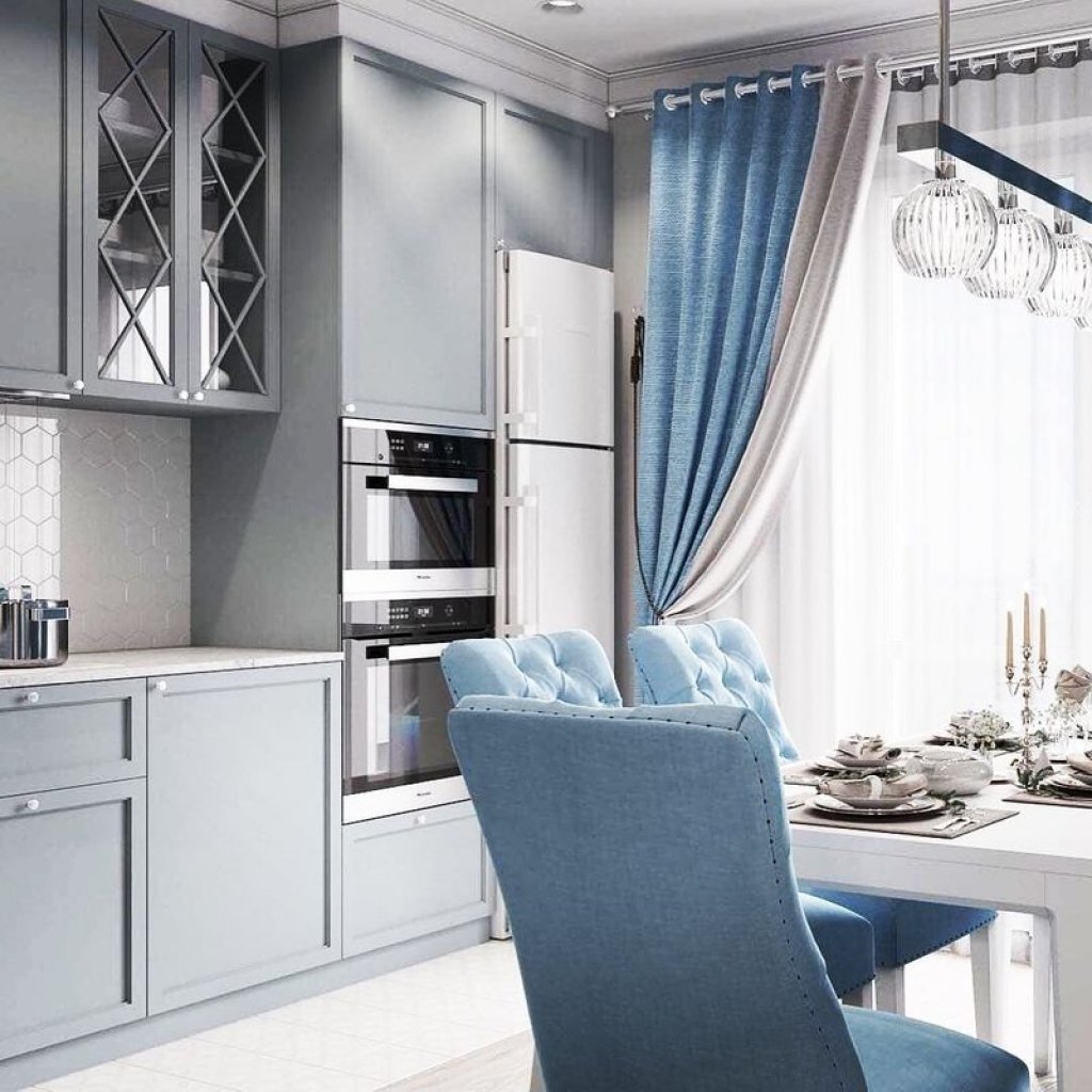 Кухня в серо-голубых тонах