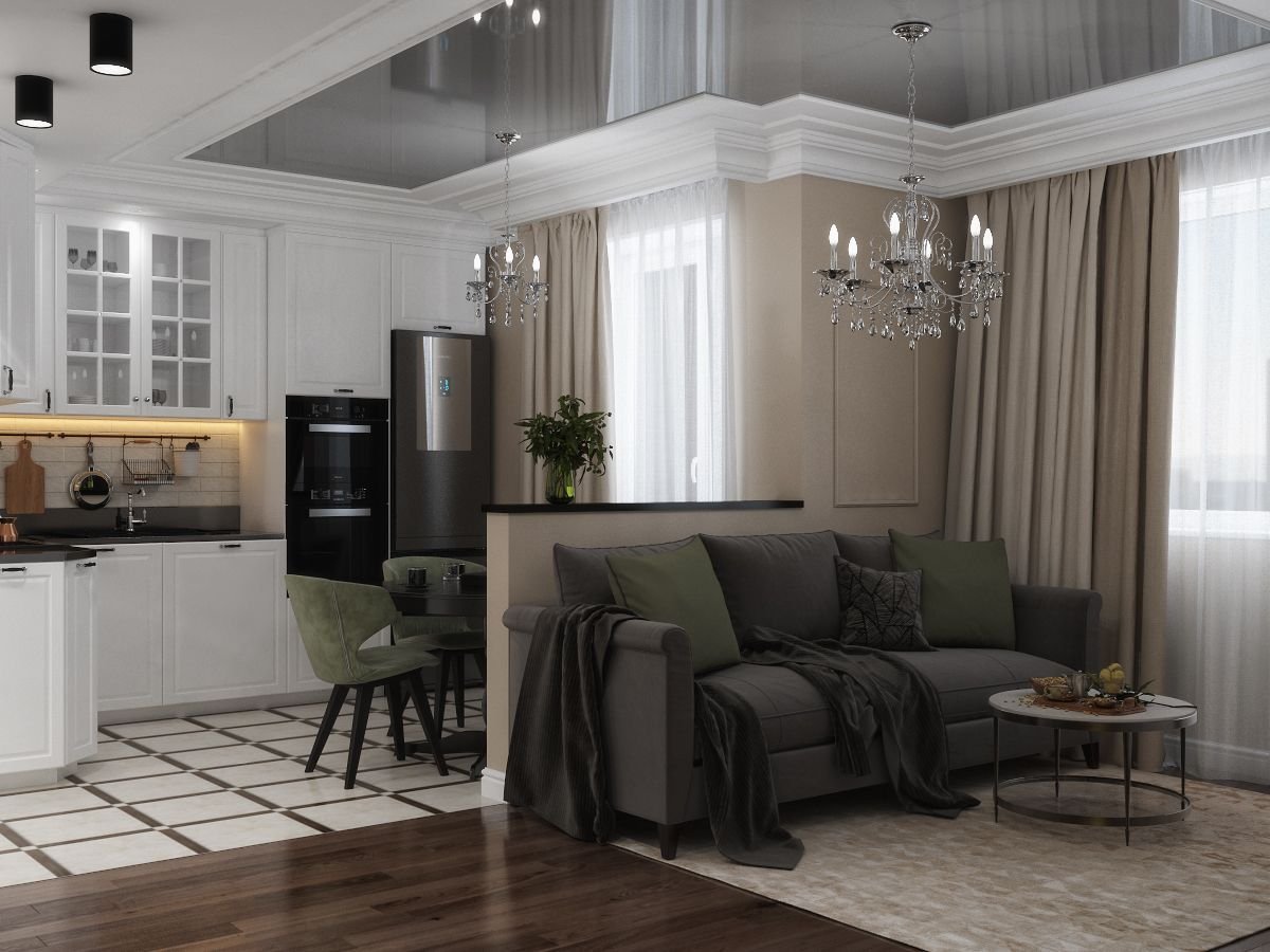 Кухня гостиная 40 кв Неоклассика