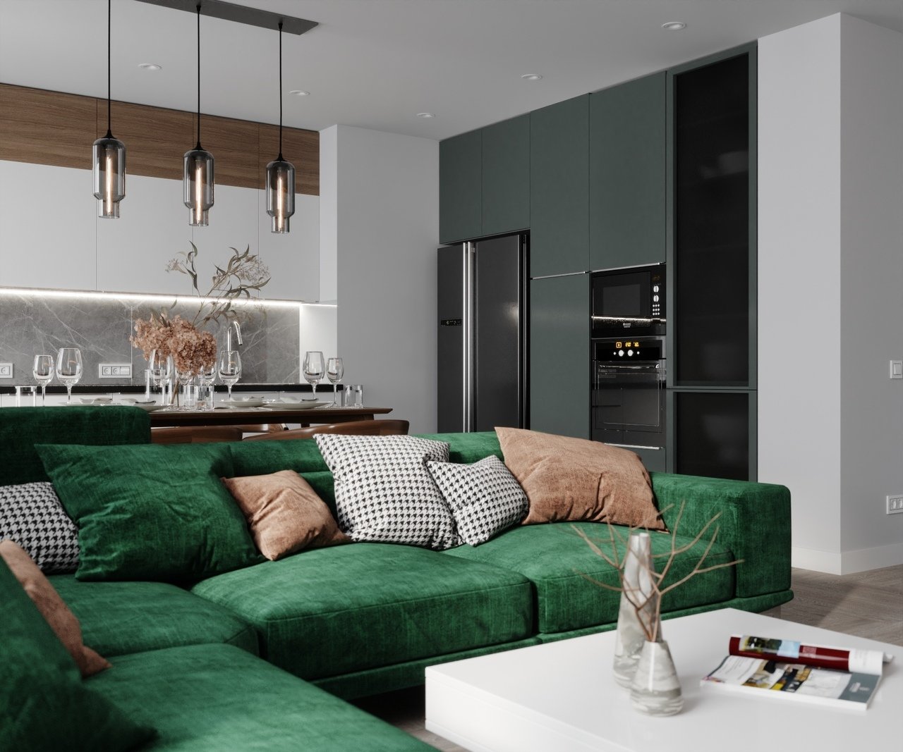 Гостиная с изумрудным диваном
