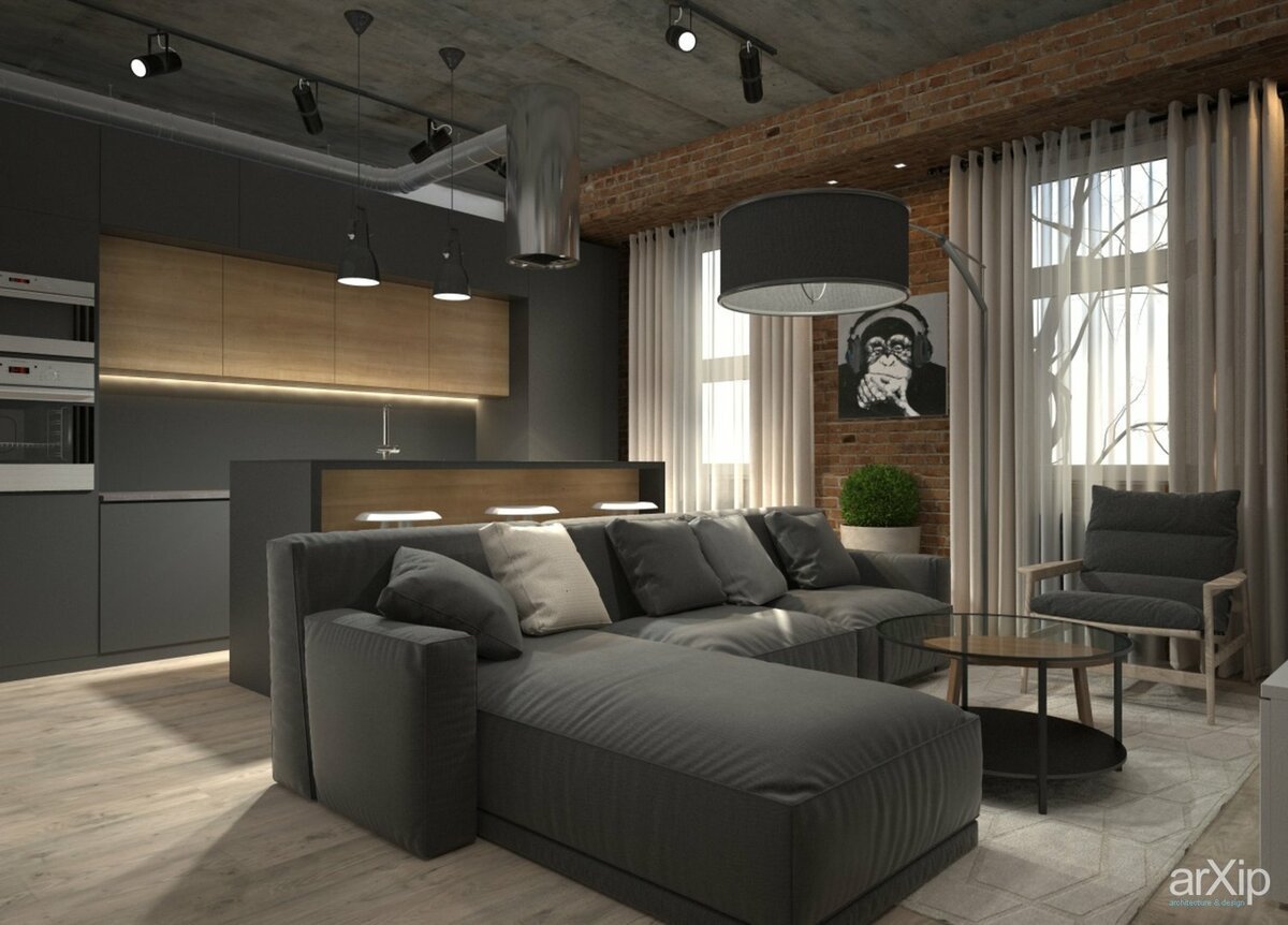 Интерьер лофт гостиная 30кв