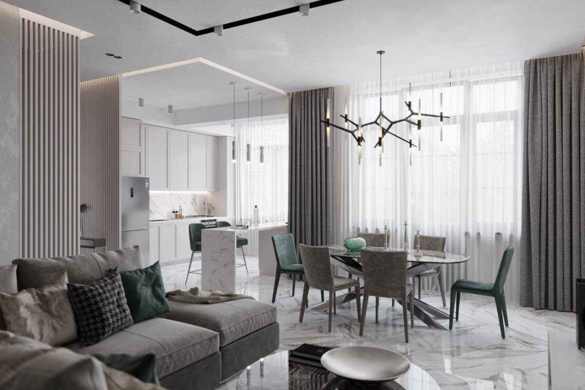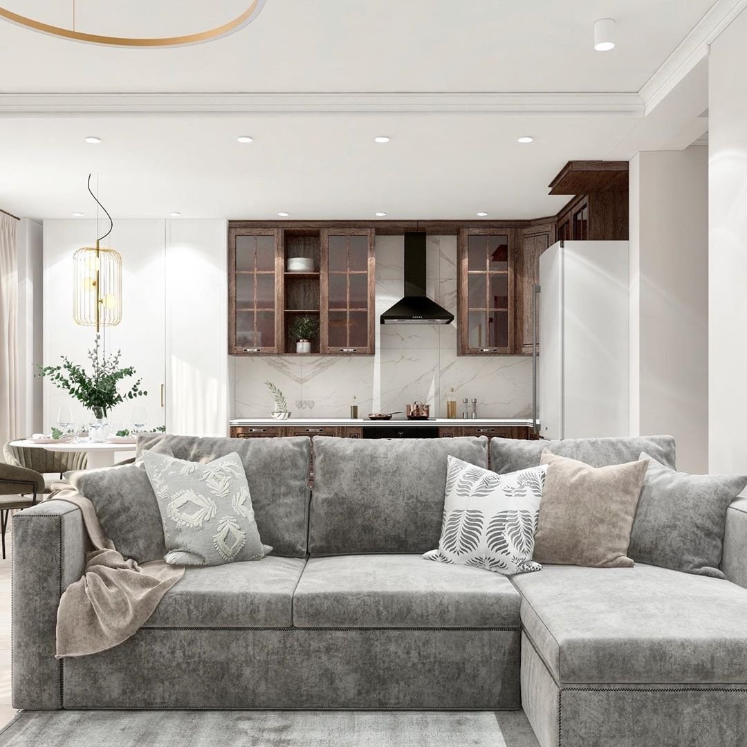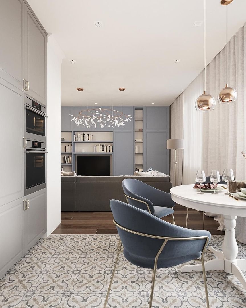 Кухня гостиная Неоклассика Скандинавия