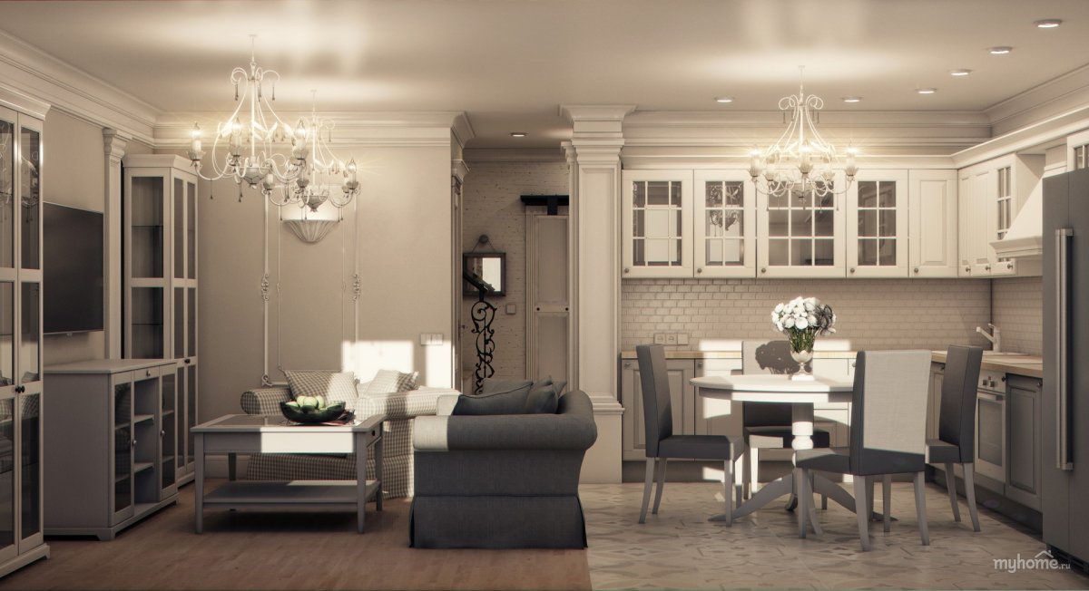 Гостиная Неоклассика 17 кв м кухня