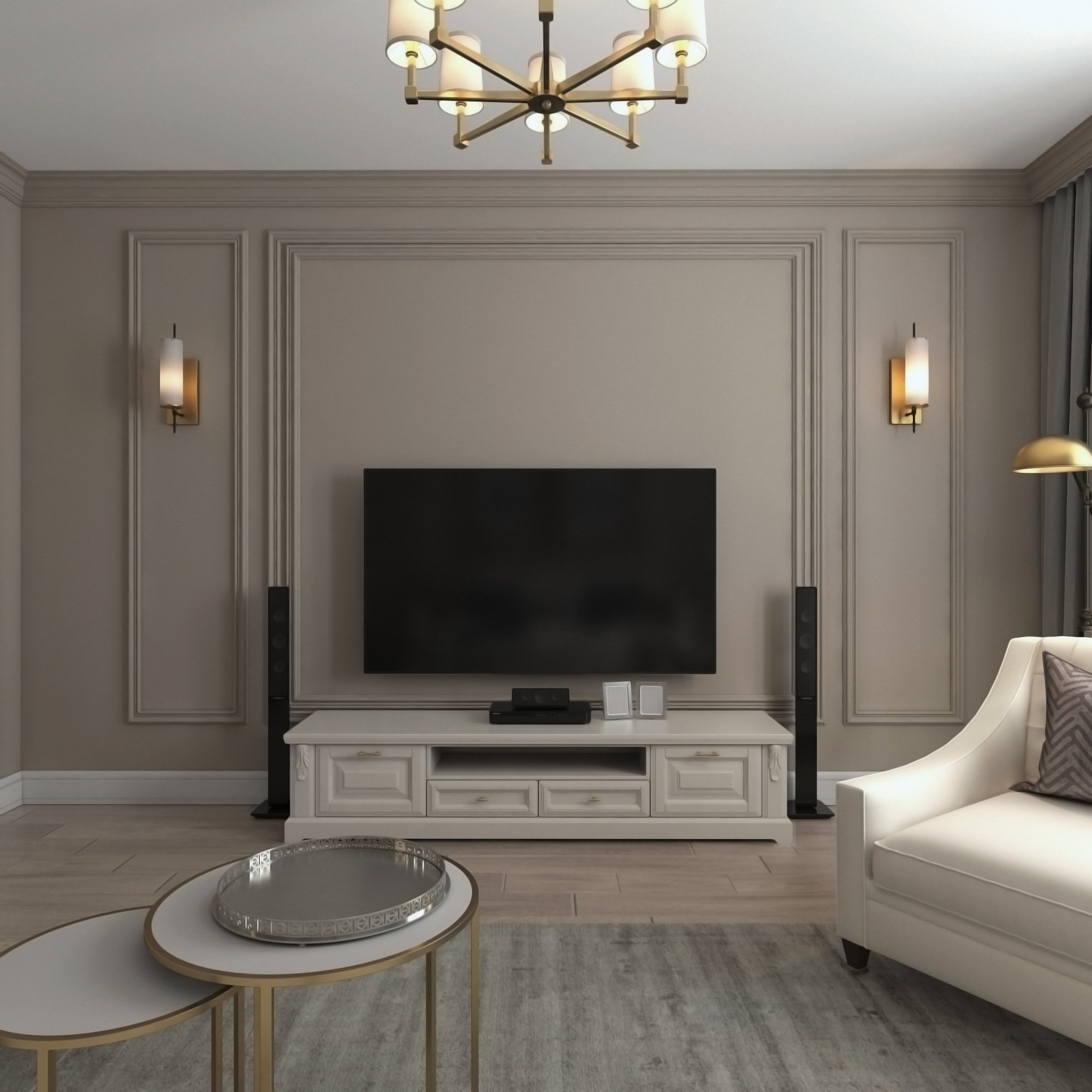 Светильники над телевизором в гостиной