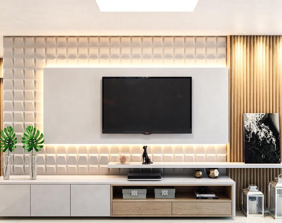 Декор стены под телевизор в гостиной