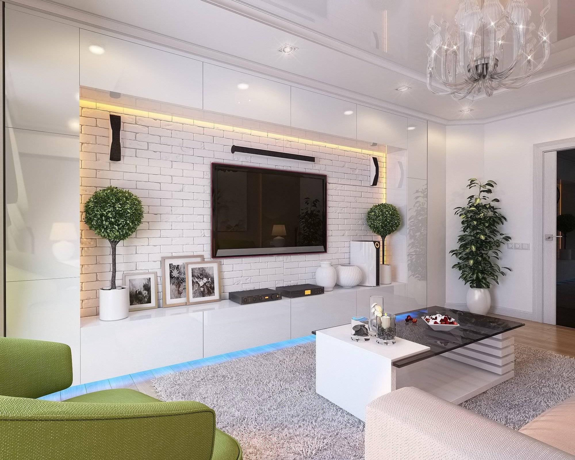 Гостиная с телевизором на стене