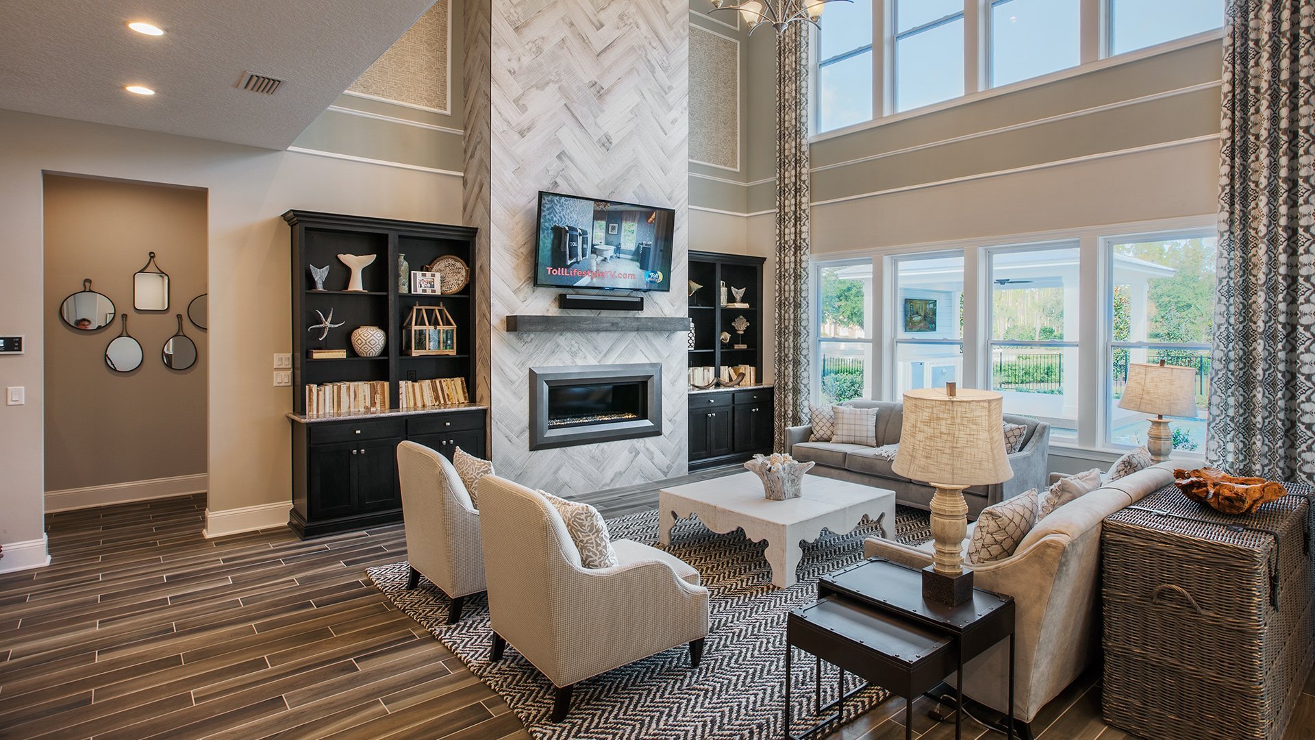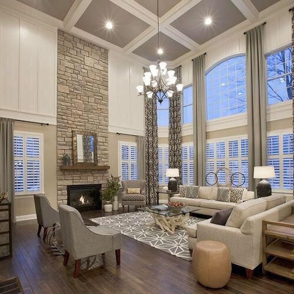 Гостиная с высоким потолком в доме