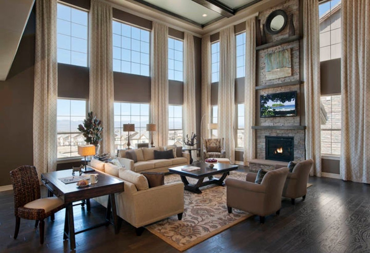 Гостиная с высокими потолками