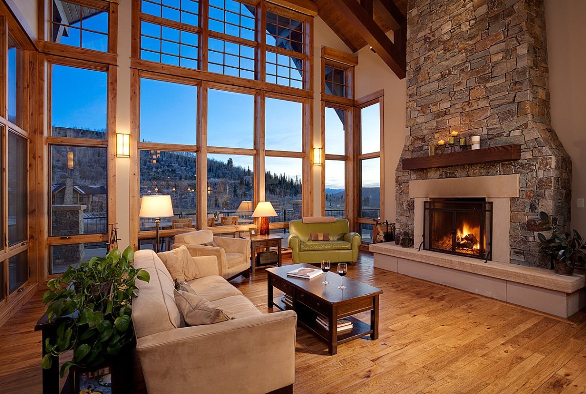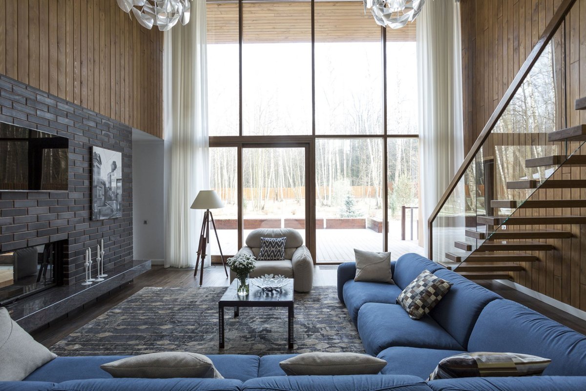 Гостиная с окнами в пол