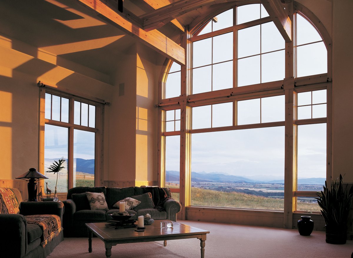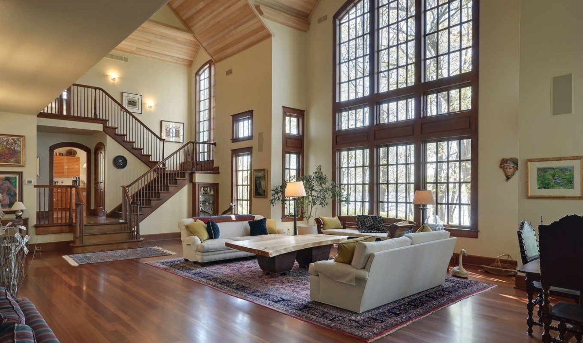 Окна в доме с высокими потолками