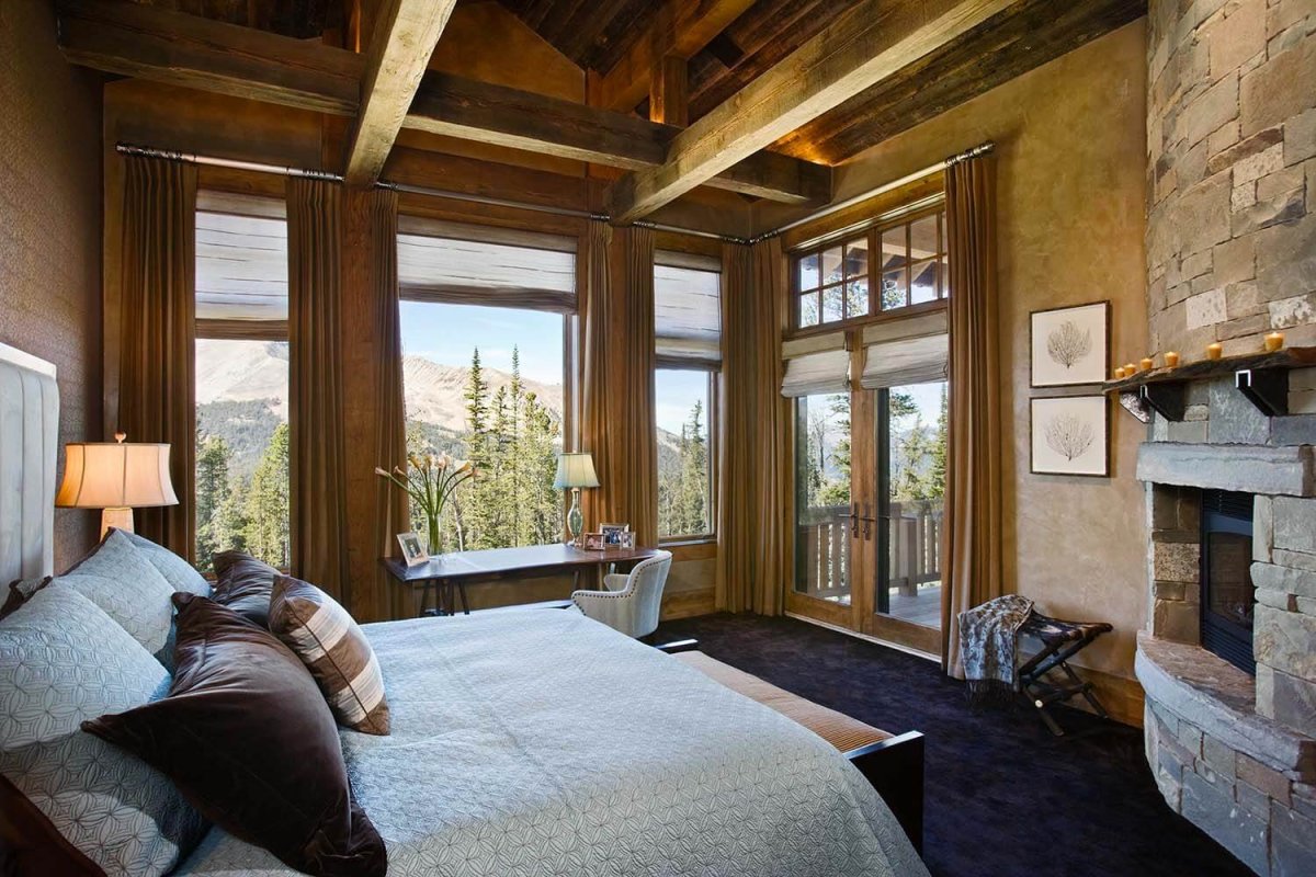 Спальня с панорамными окнами в доме