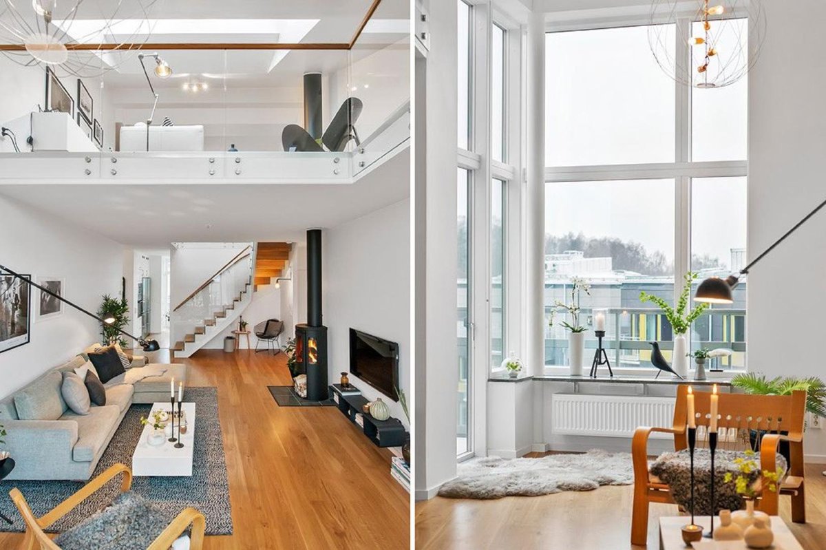 Скандинавский стиль с высокими потолками
