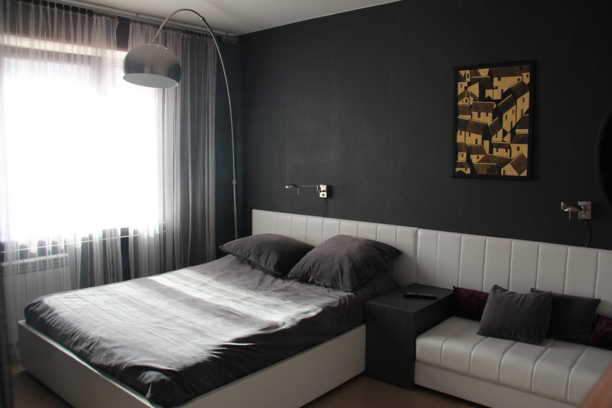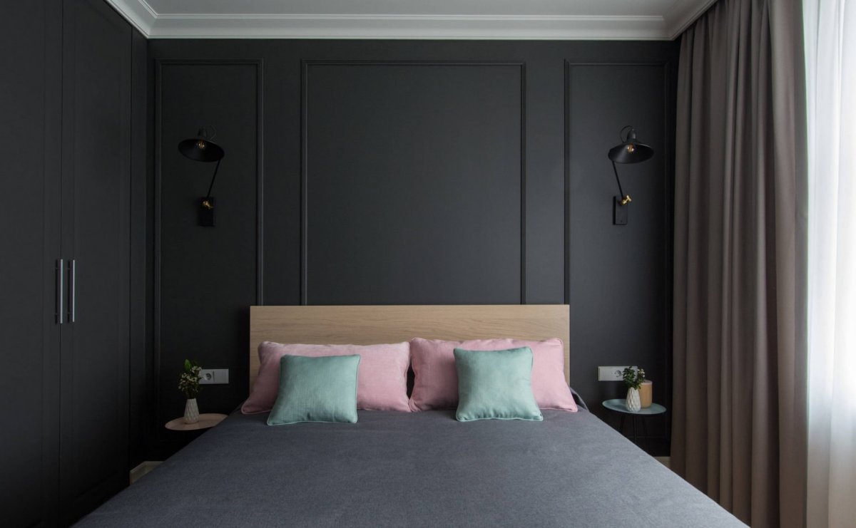 Черная стена в спальне