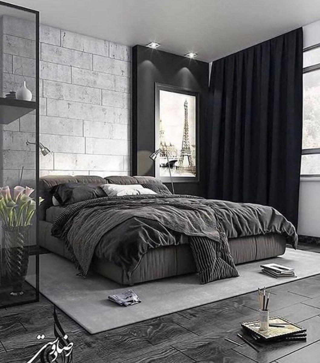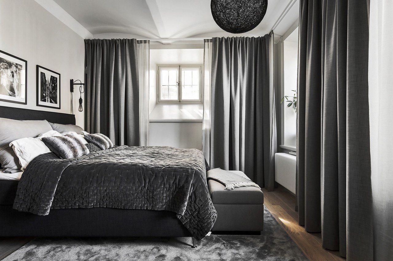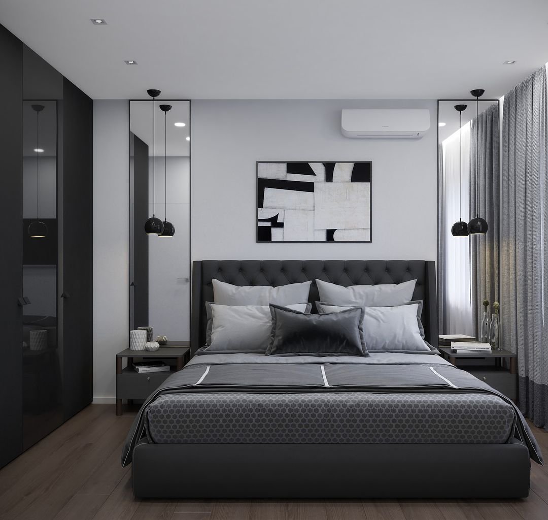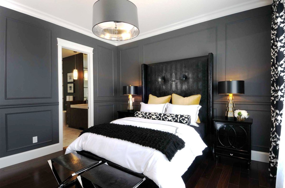 Спальня в серо черных тонах