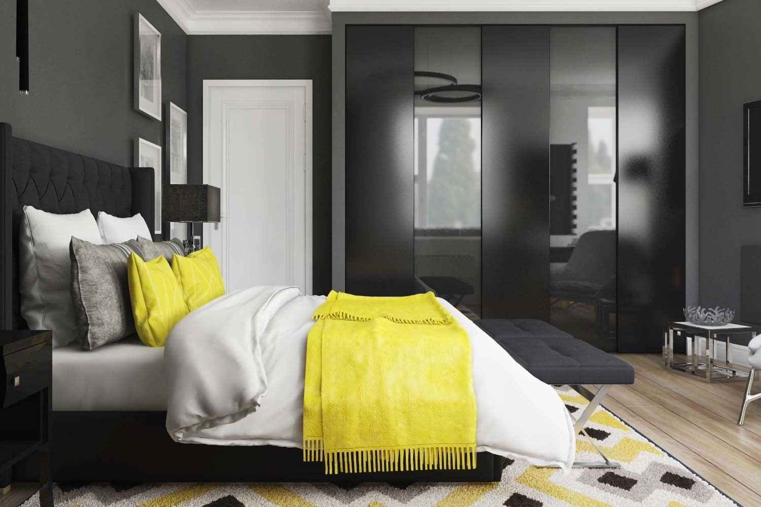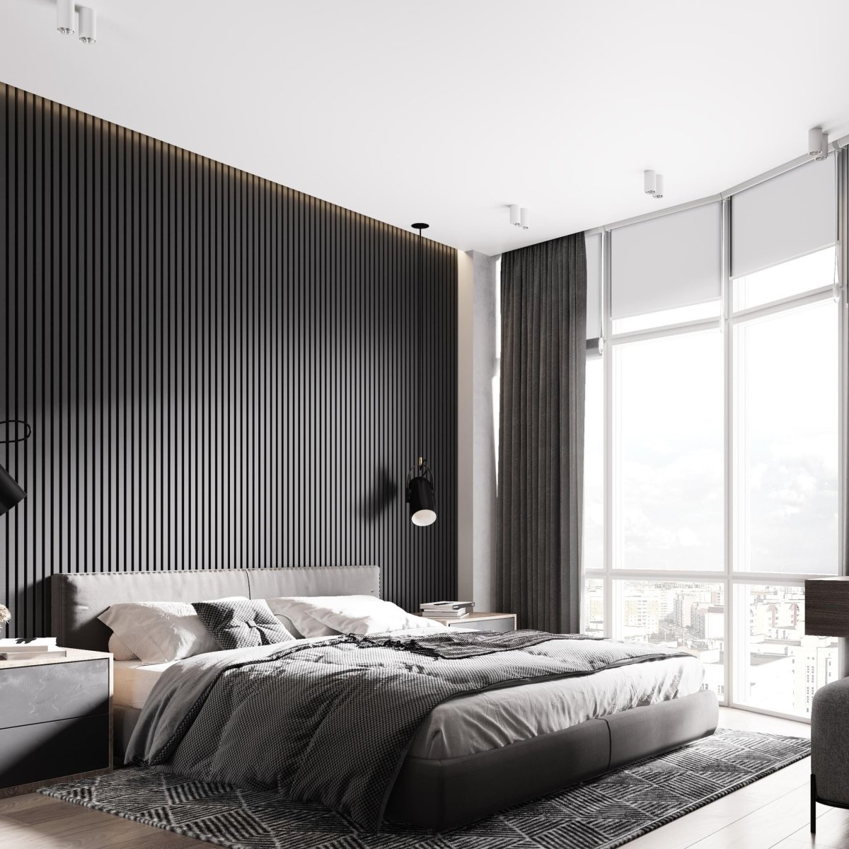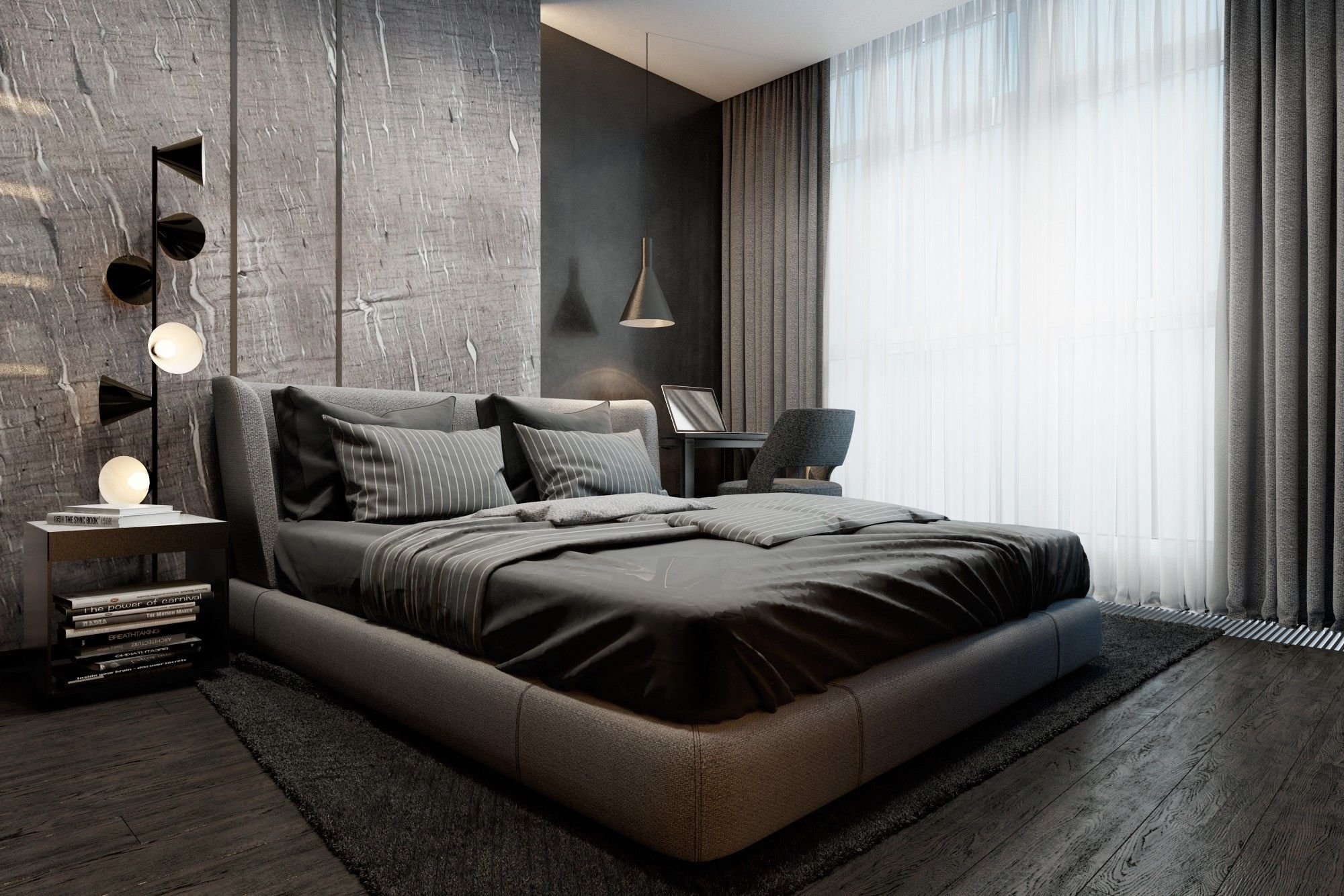 Спальня в серо черных тонах