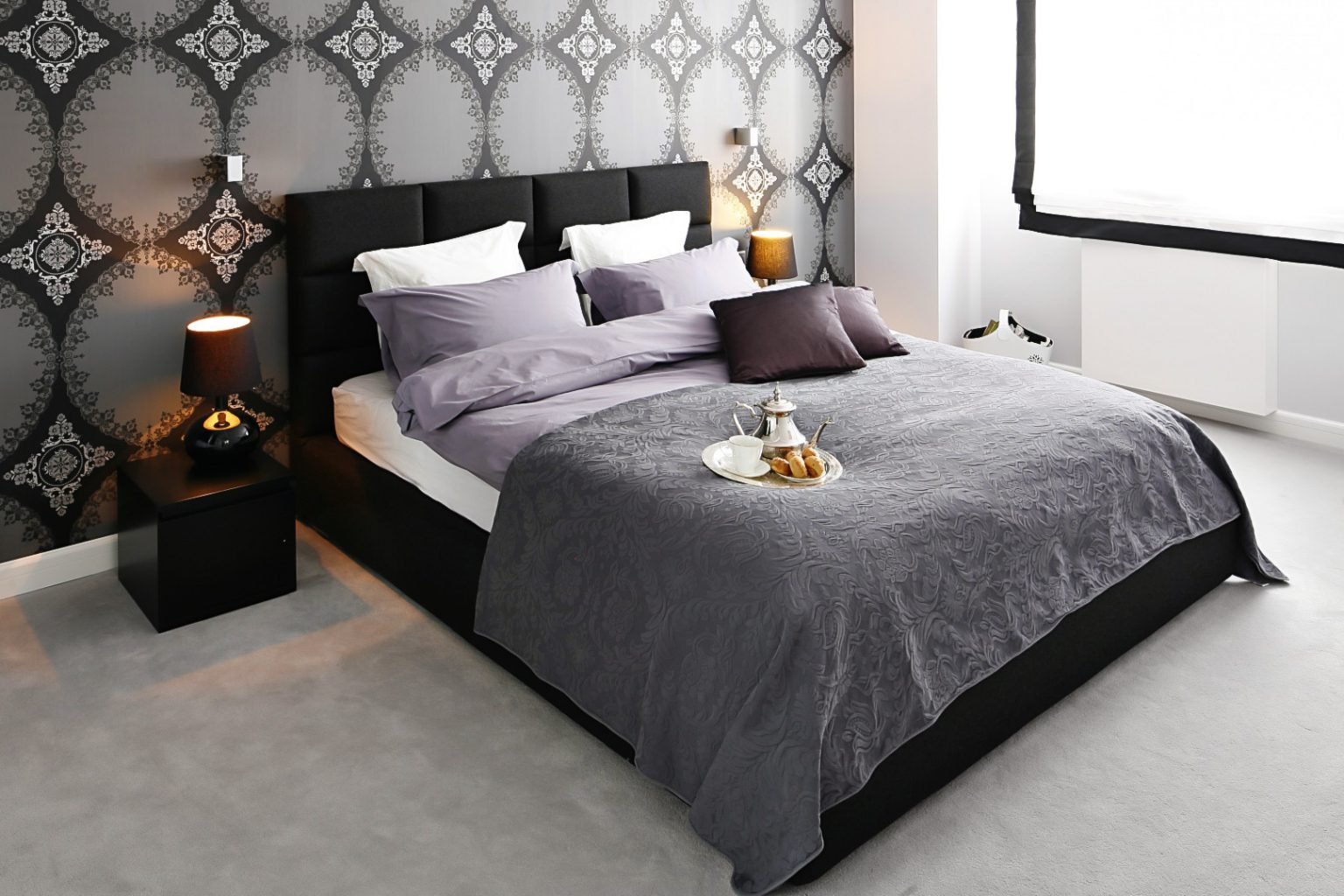 Черная кровать в интерьере