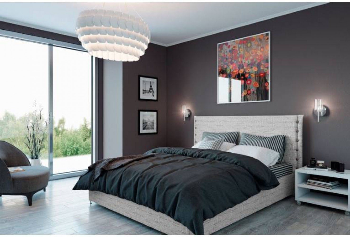 Темно серая кровать в интерьере