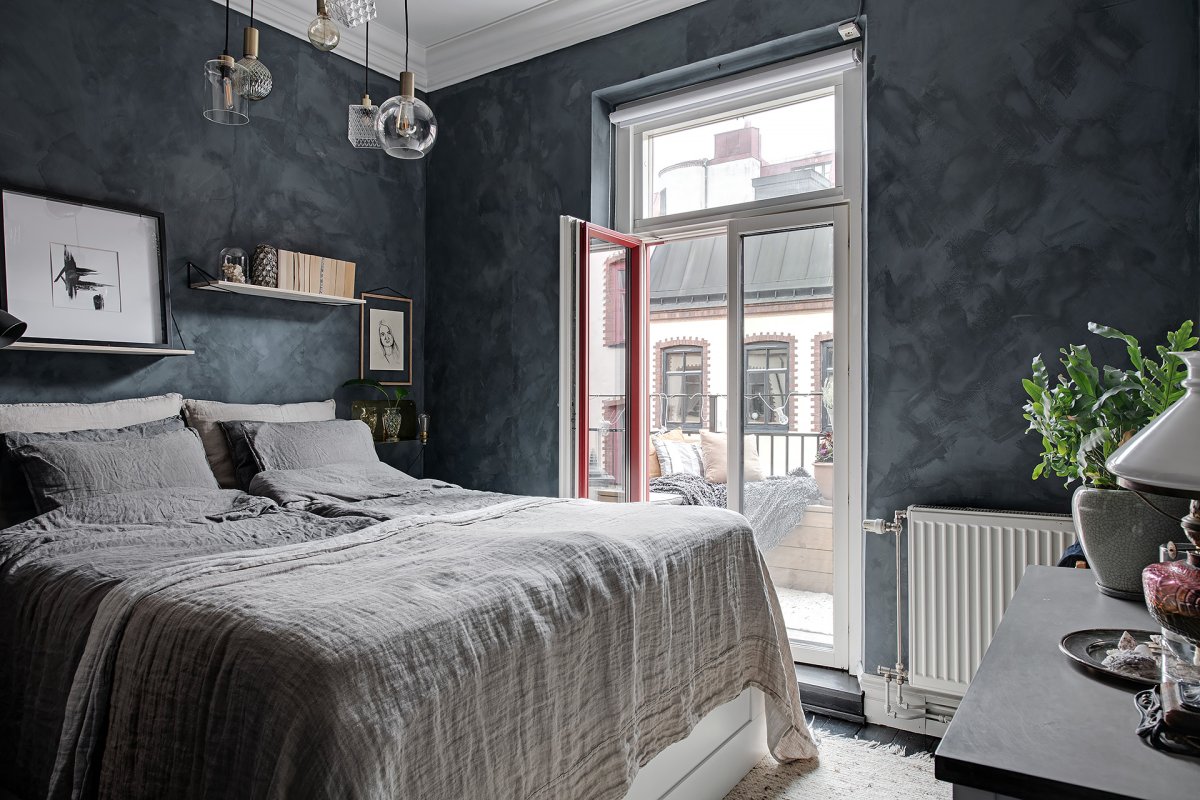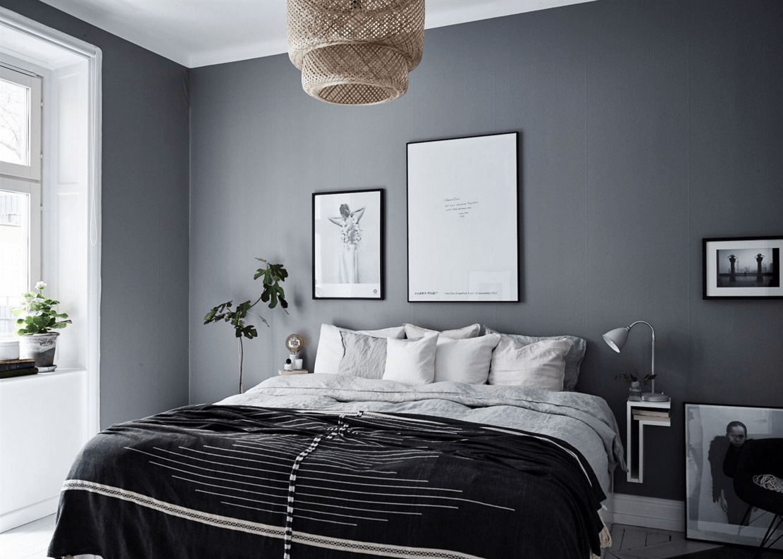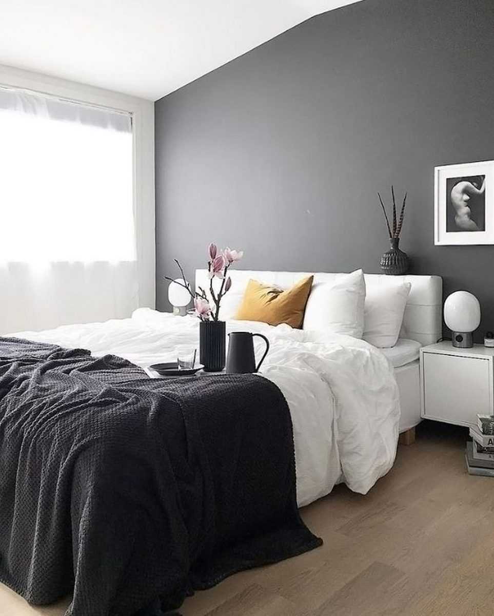 Серые стены в спальне