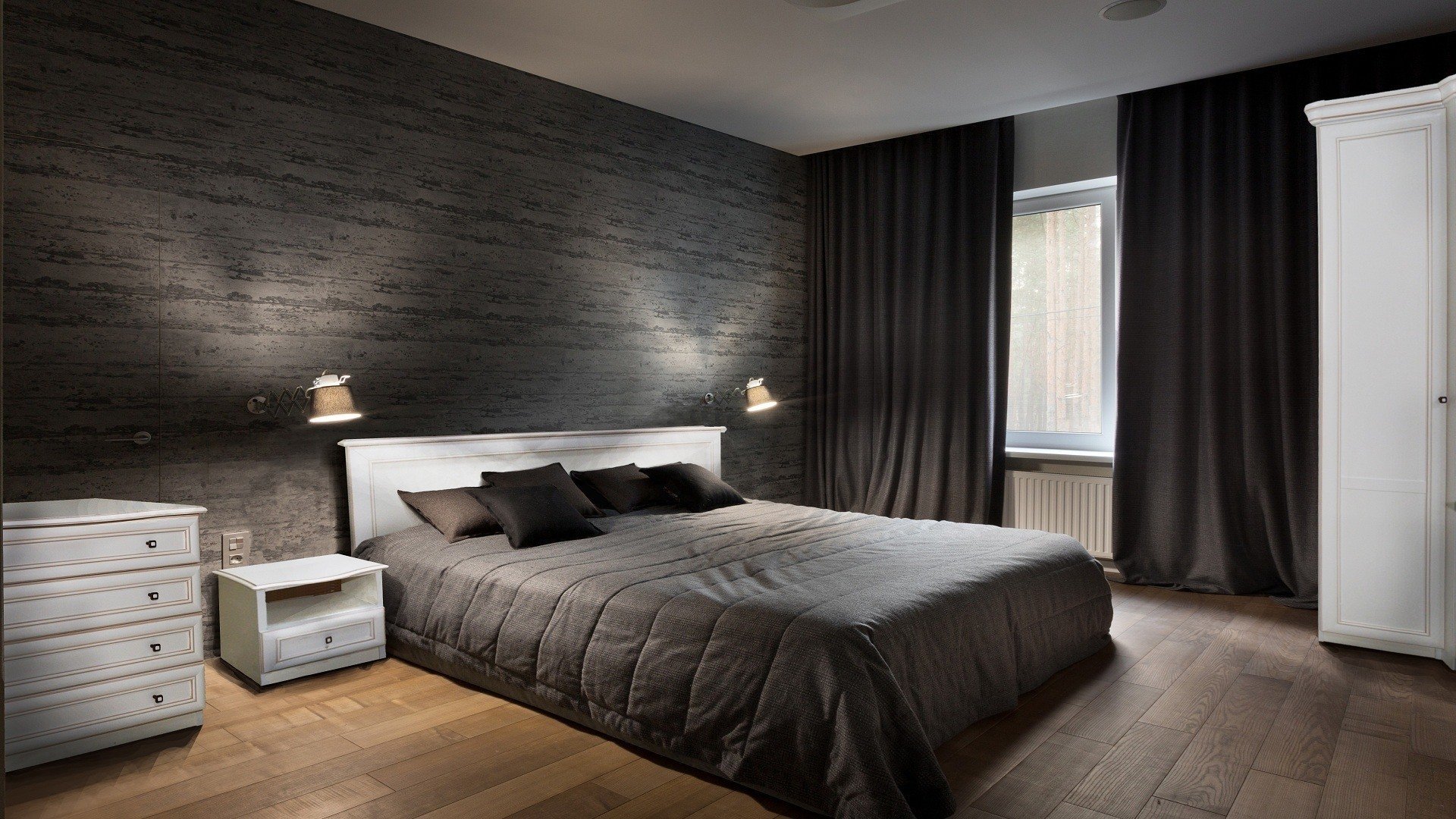 Графит и дерево интерьеры спальни