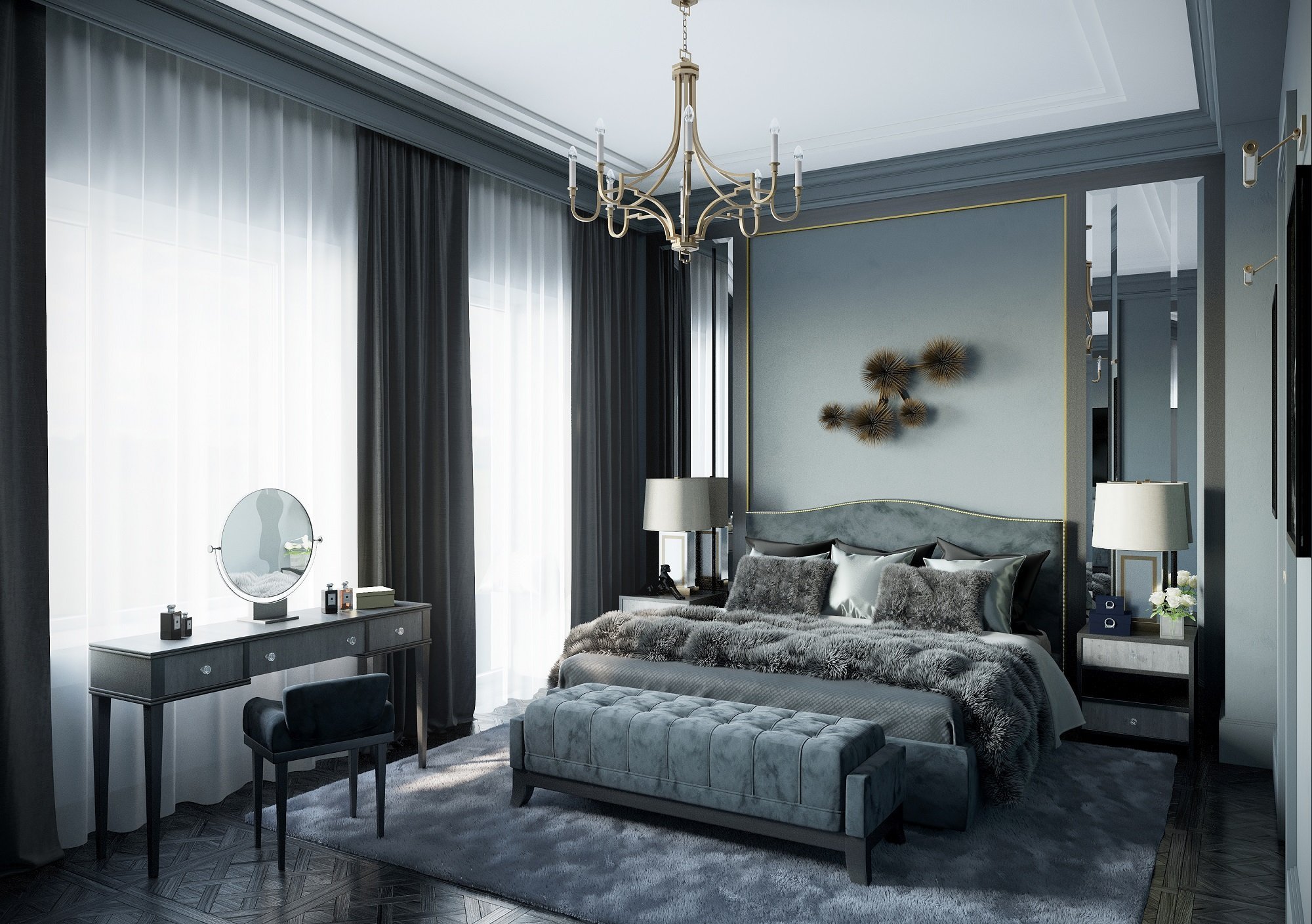 Спальня арт-деко в серебре