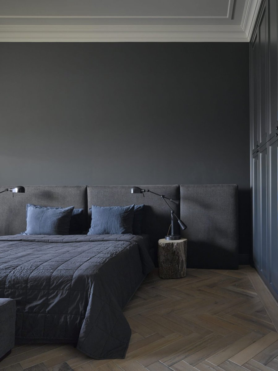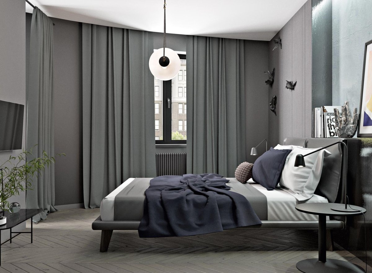 Темно серая спальня