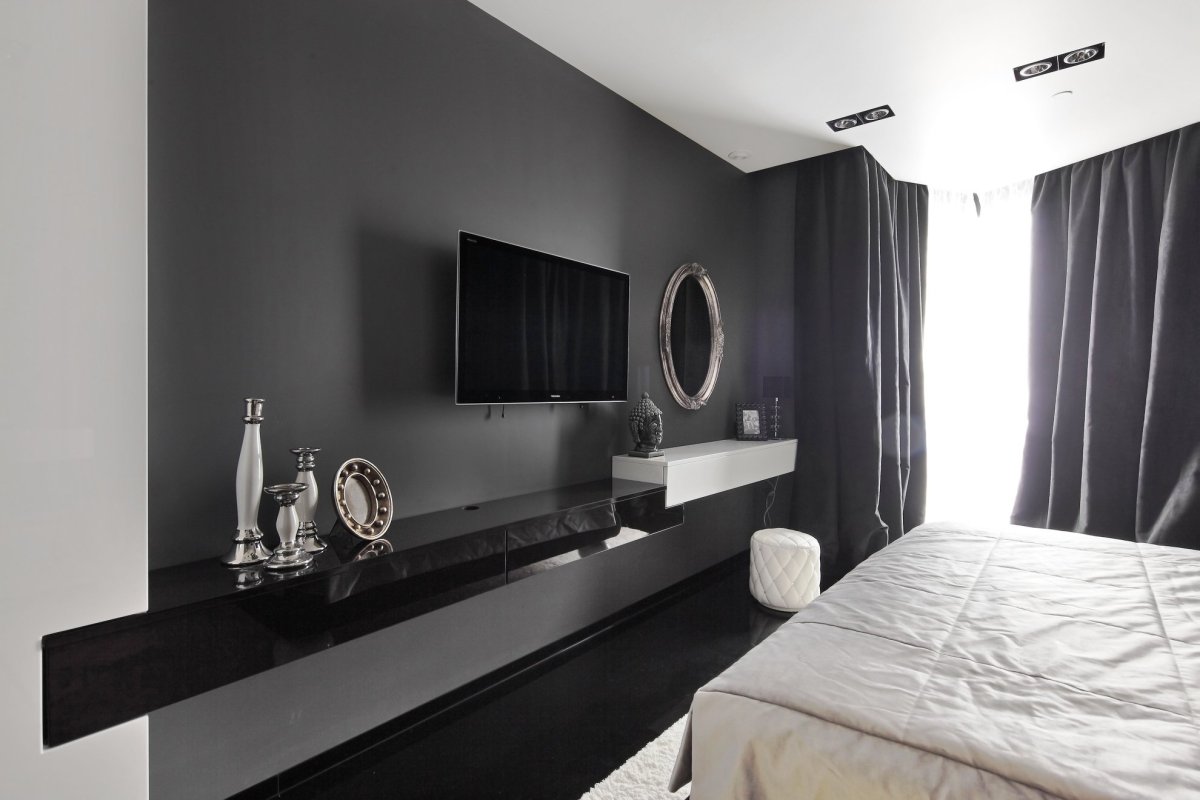 Черно белая спальня