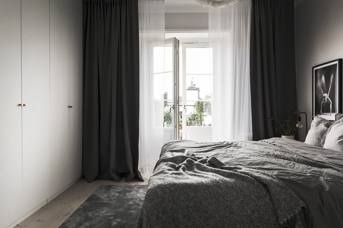 Серые шторы в спальне