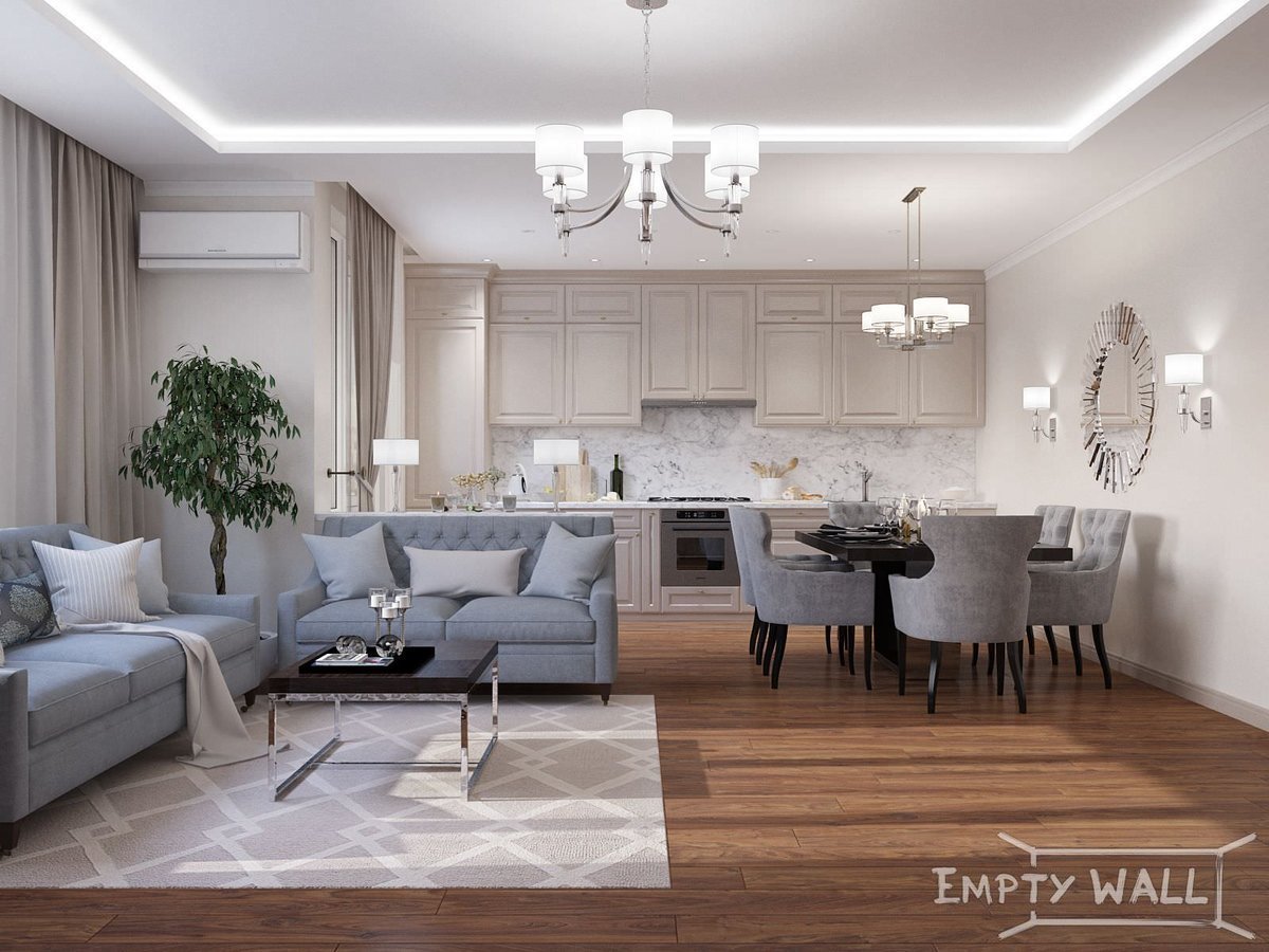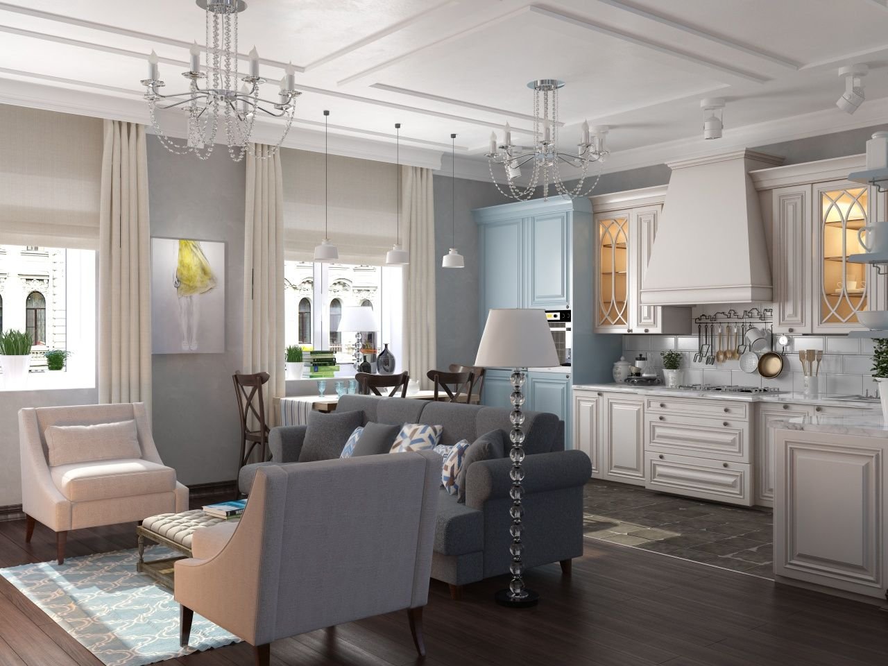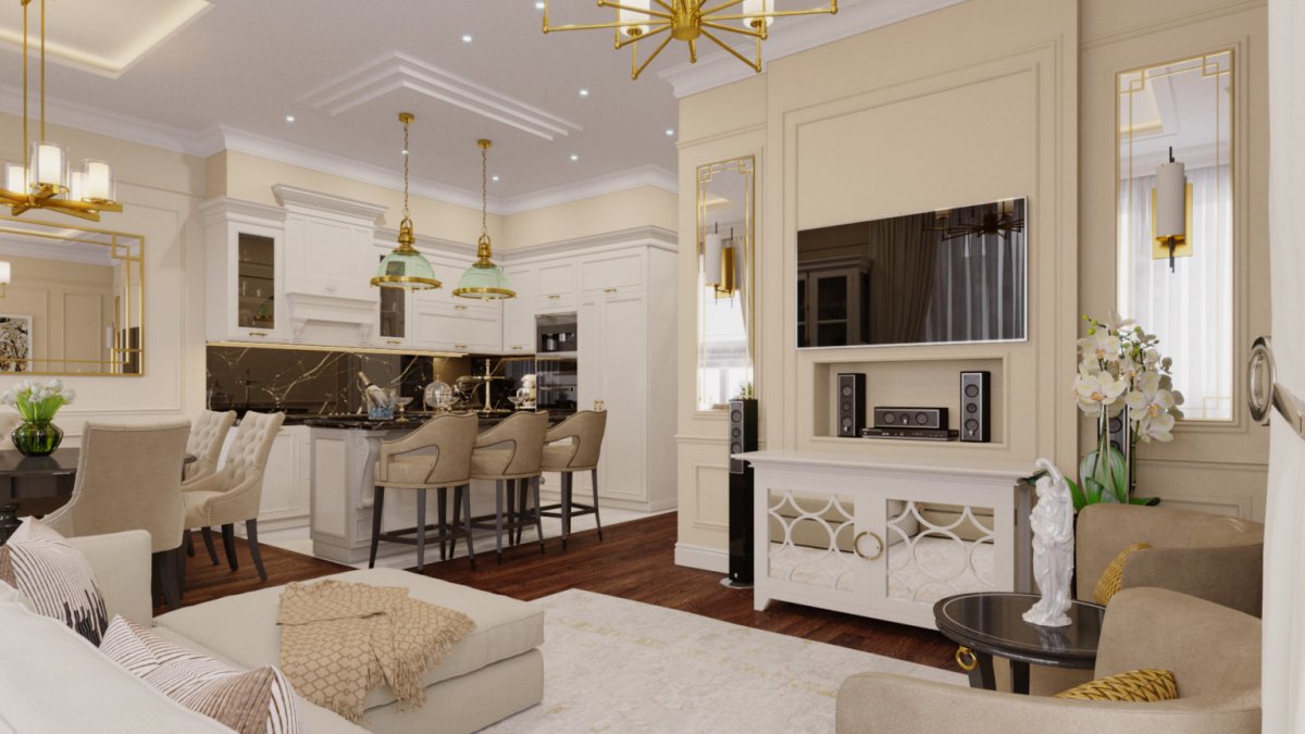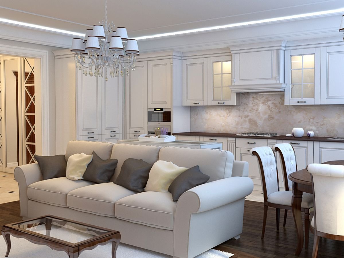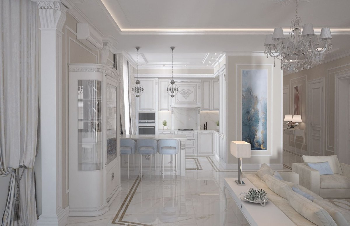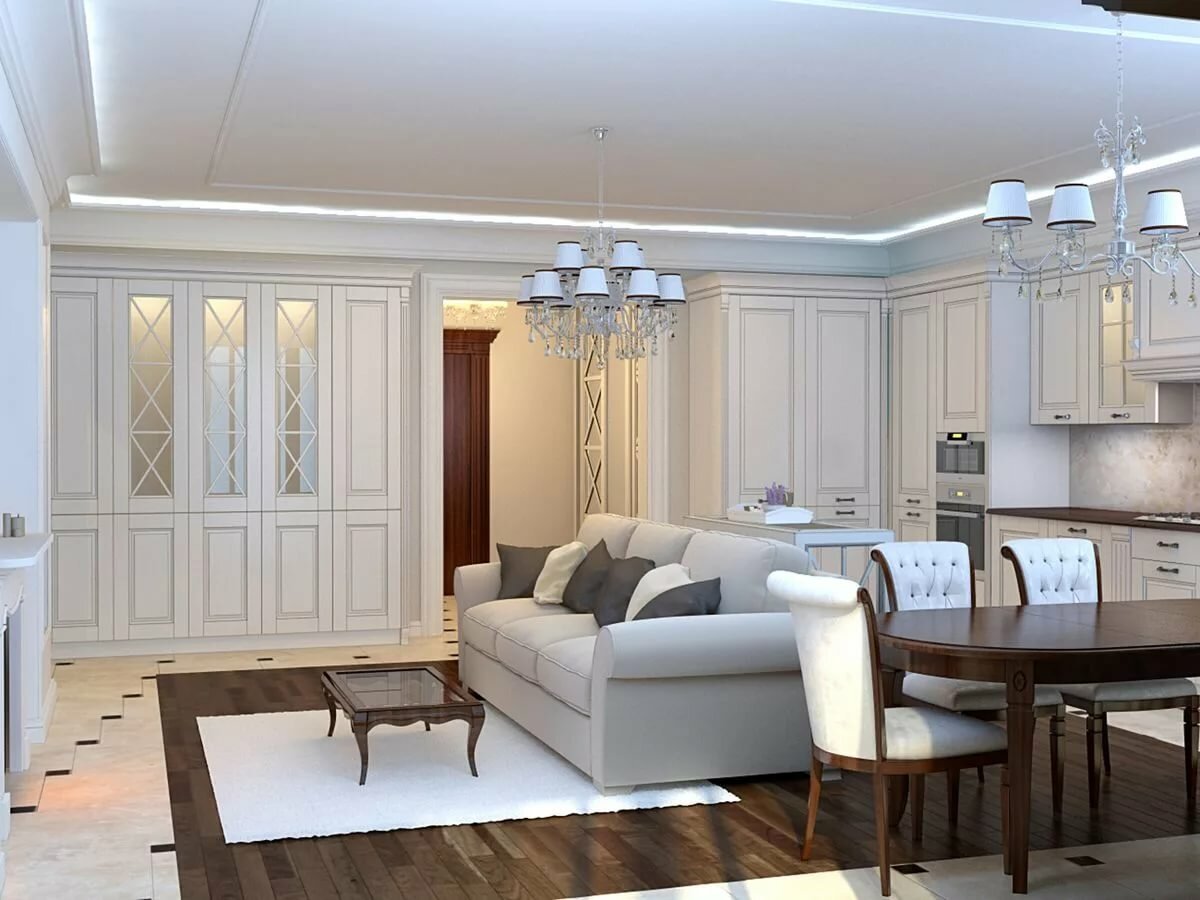 Гостиная совмещенная с кухней в стиле Неоклассика