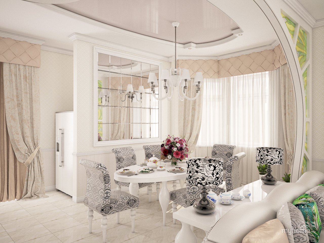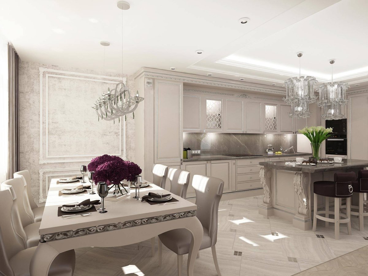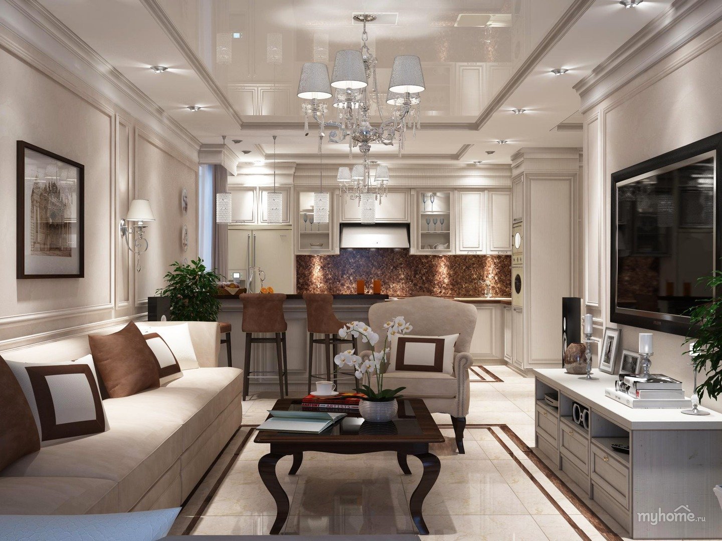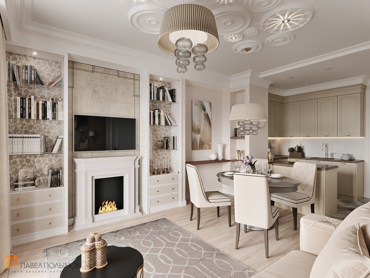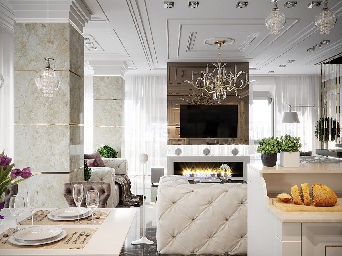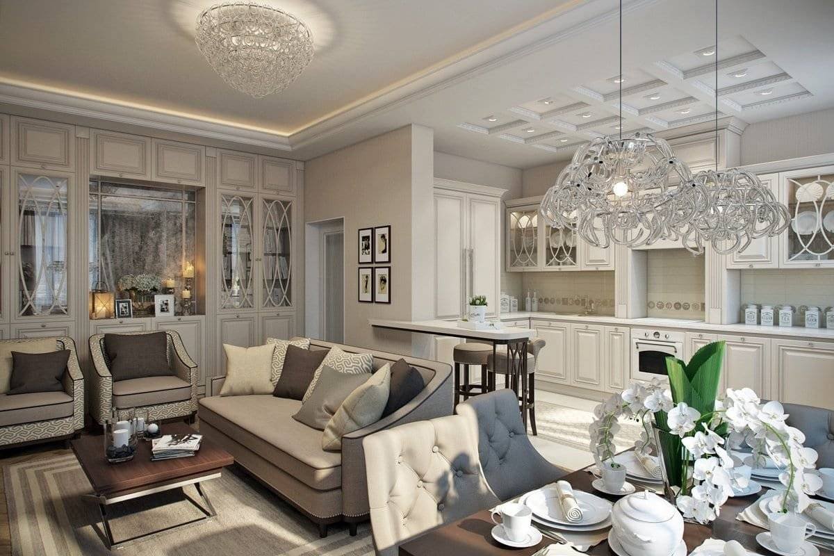 Гостиная совмещенная с кухней в стиле Неоклассика