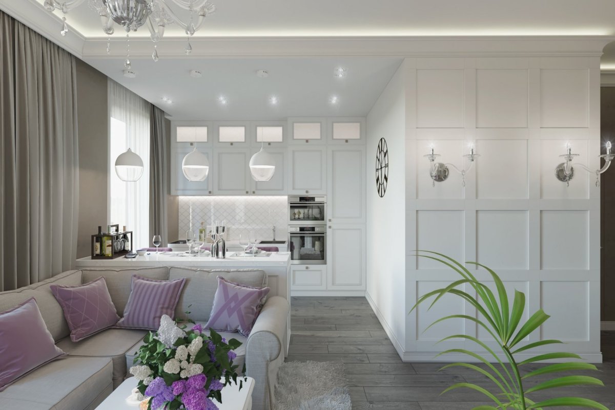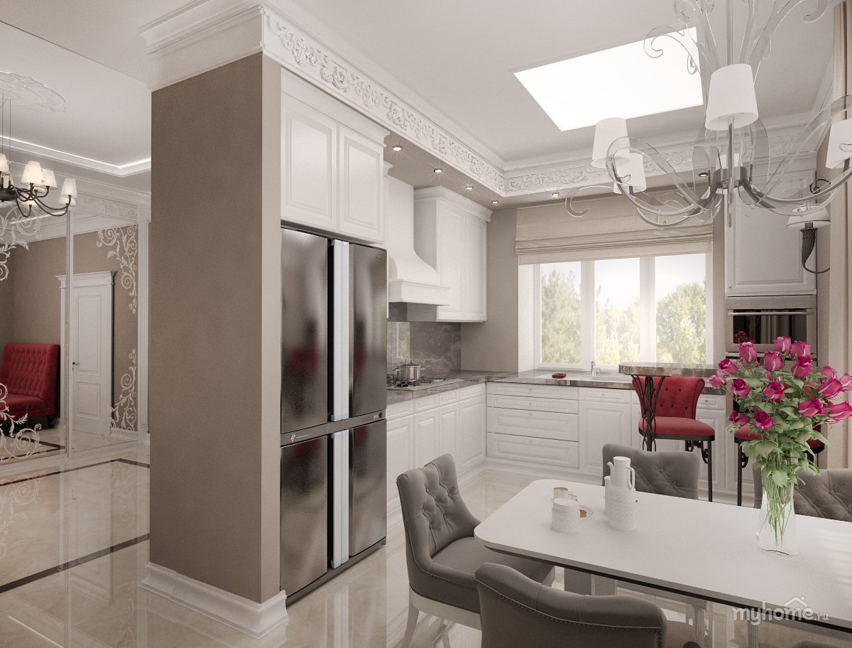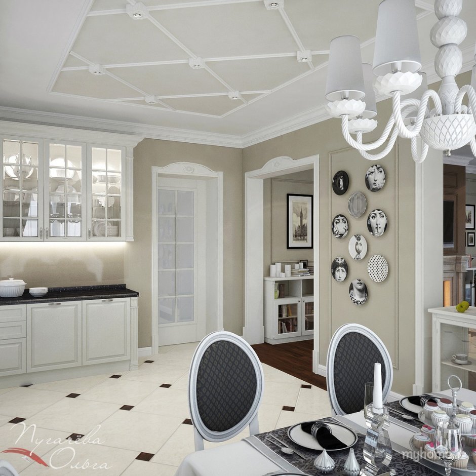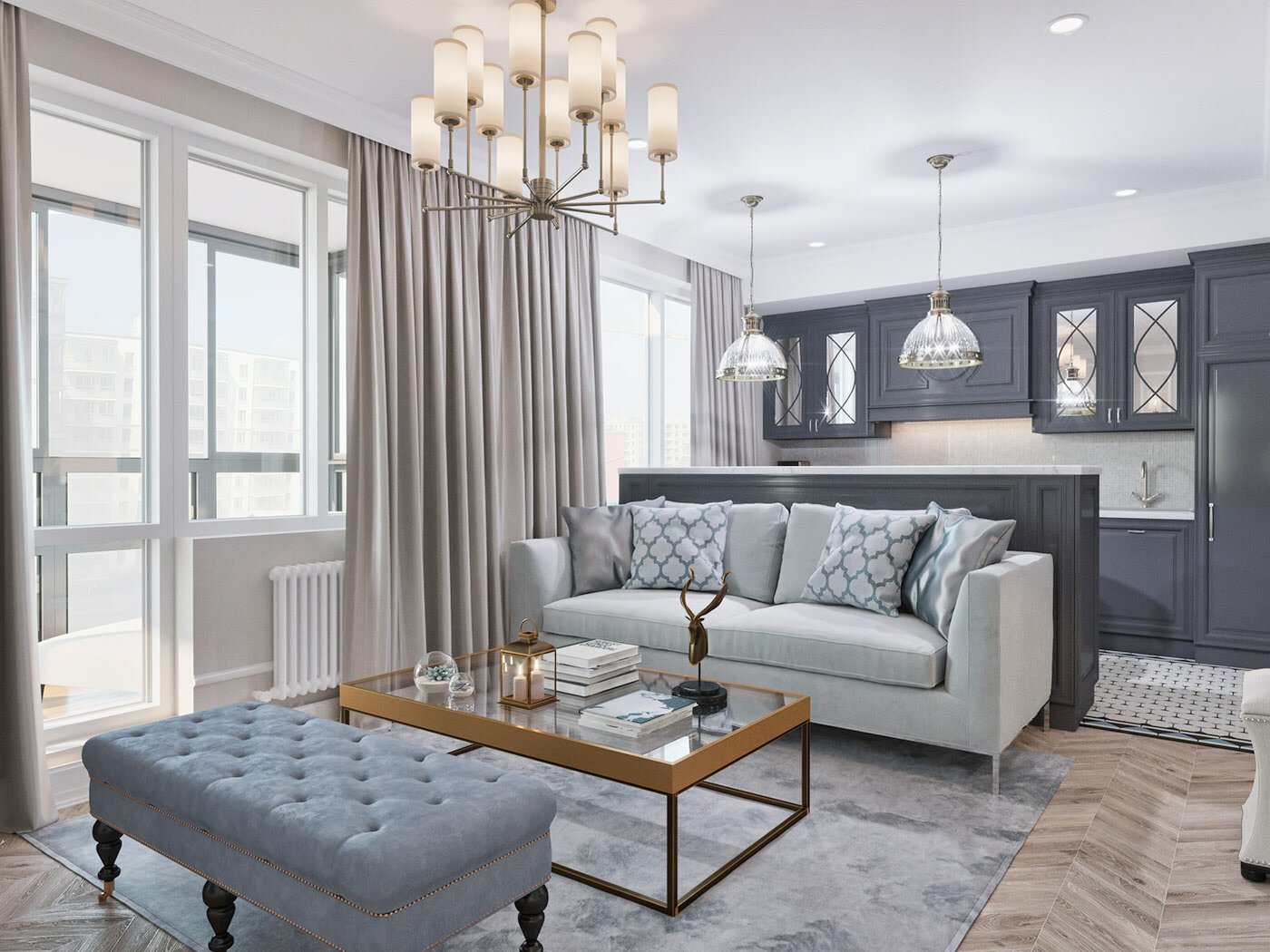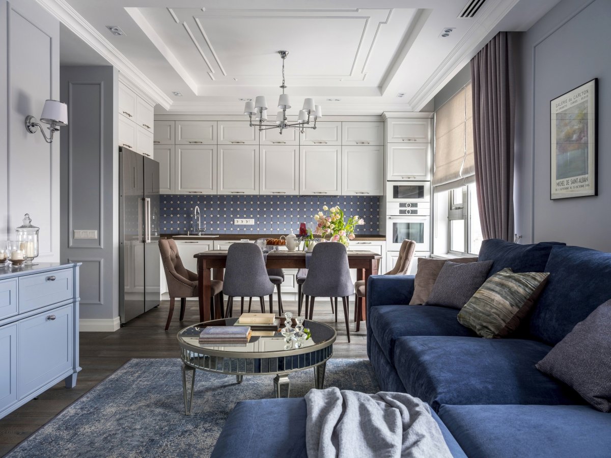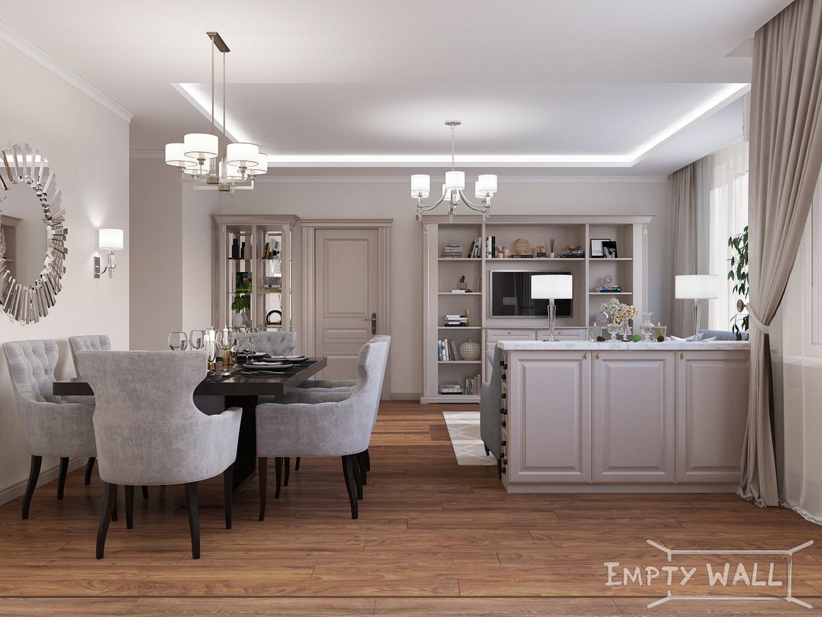 Гостиная совмещенная с кухней в стиле Неоклассика