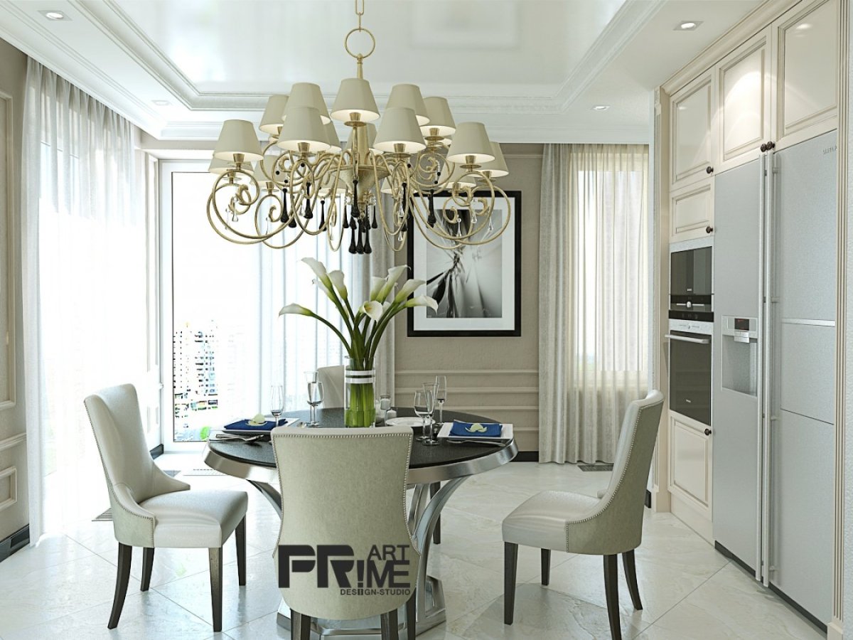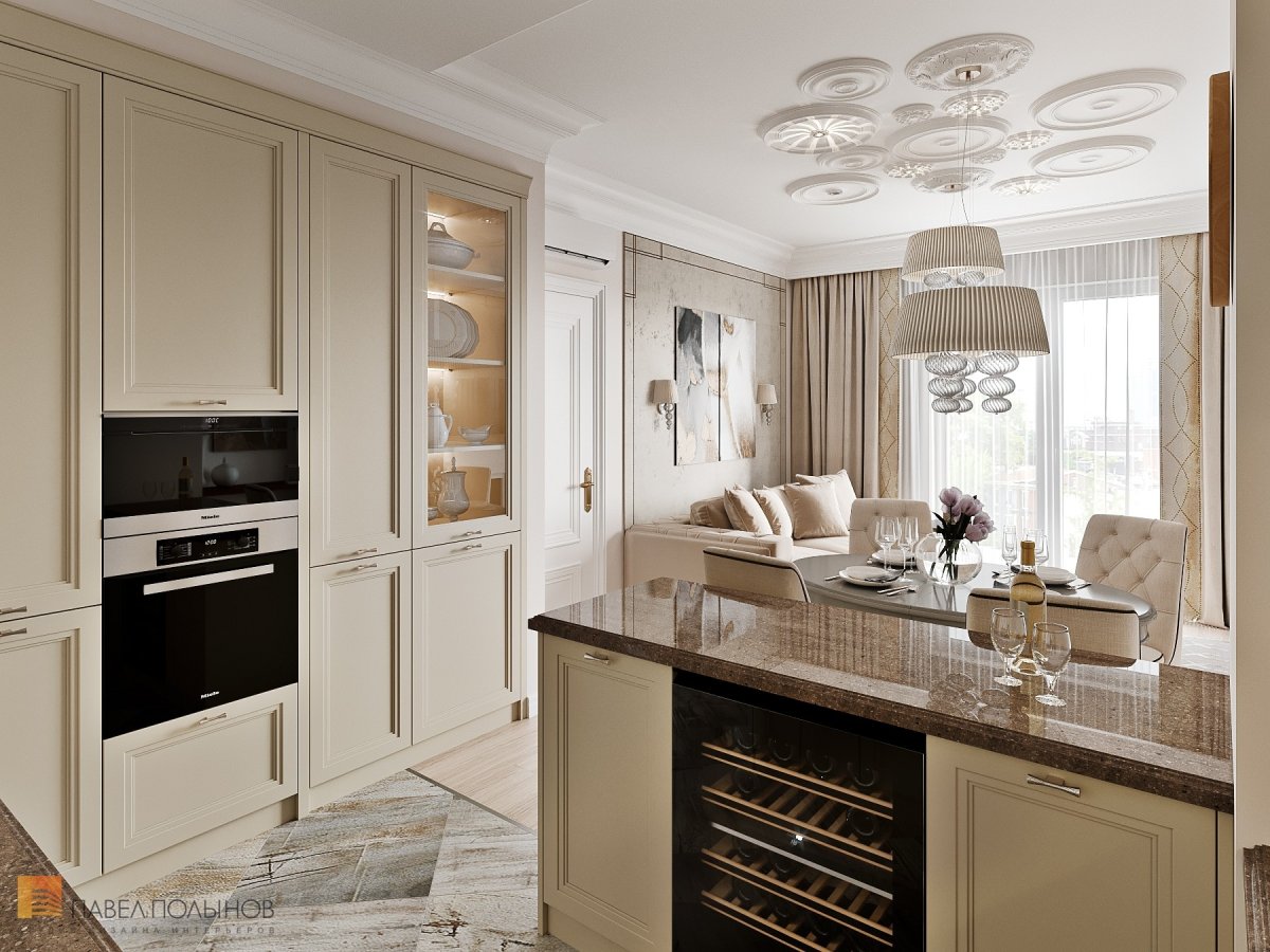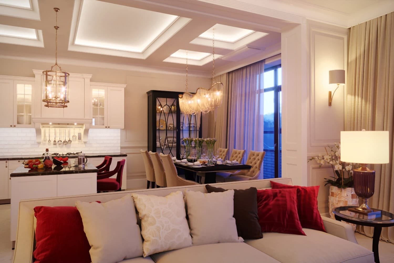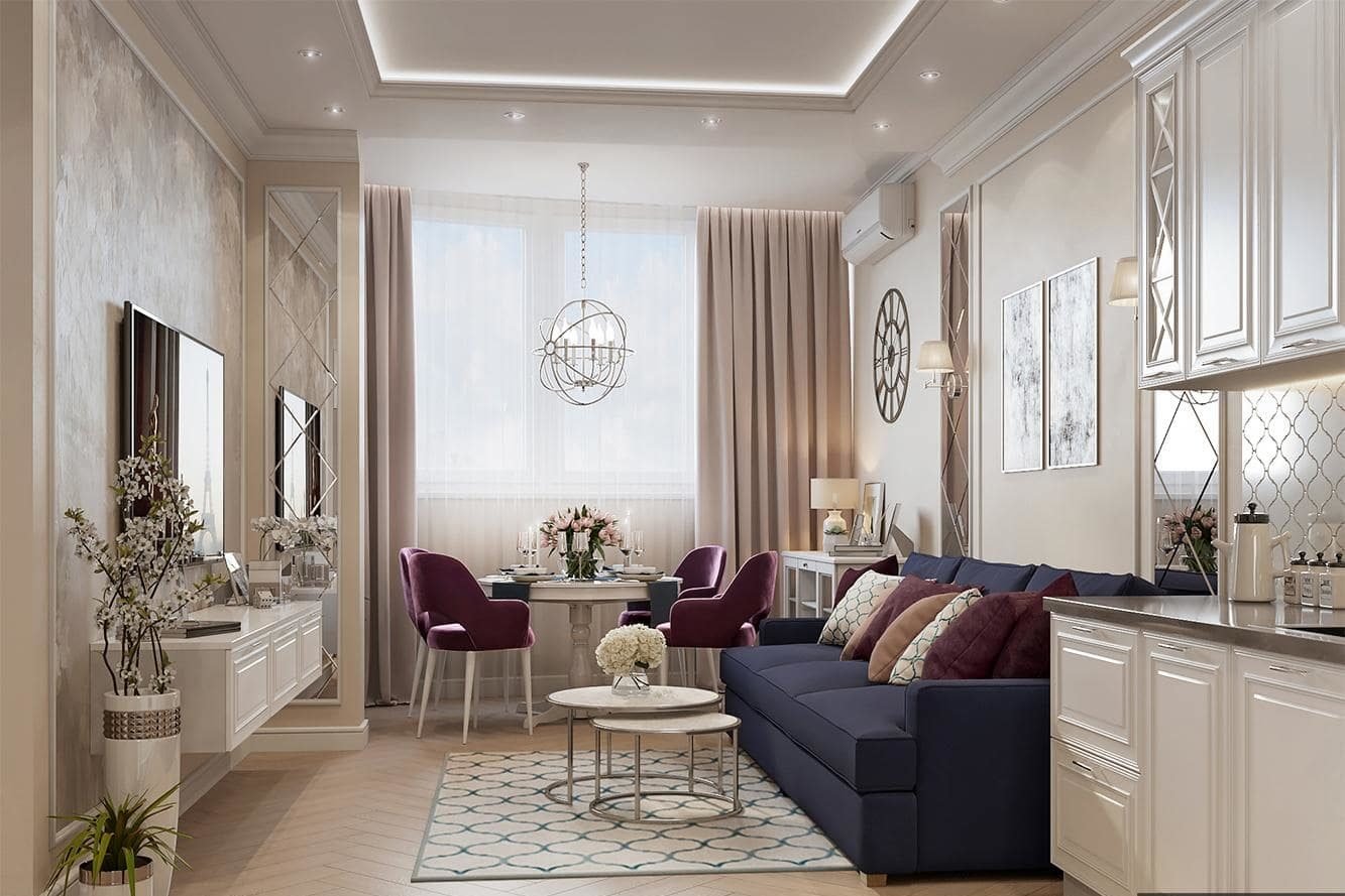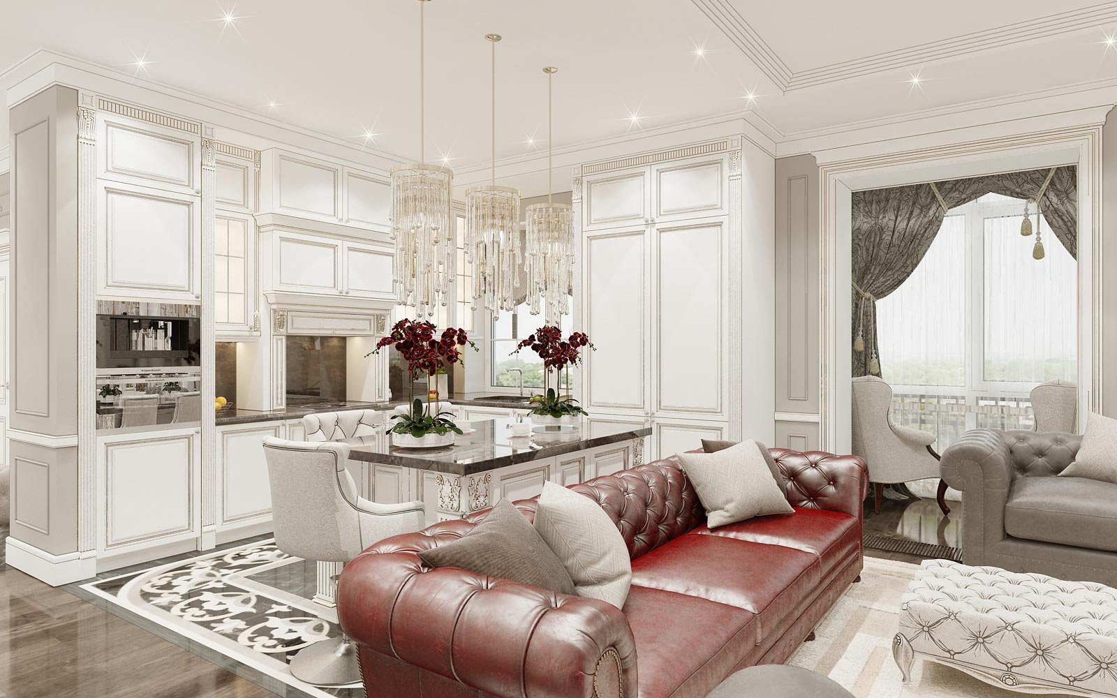 Гостиная совмещенная с кухней в стиле Неоклассика
