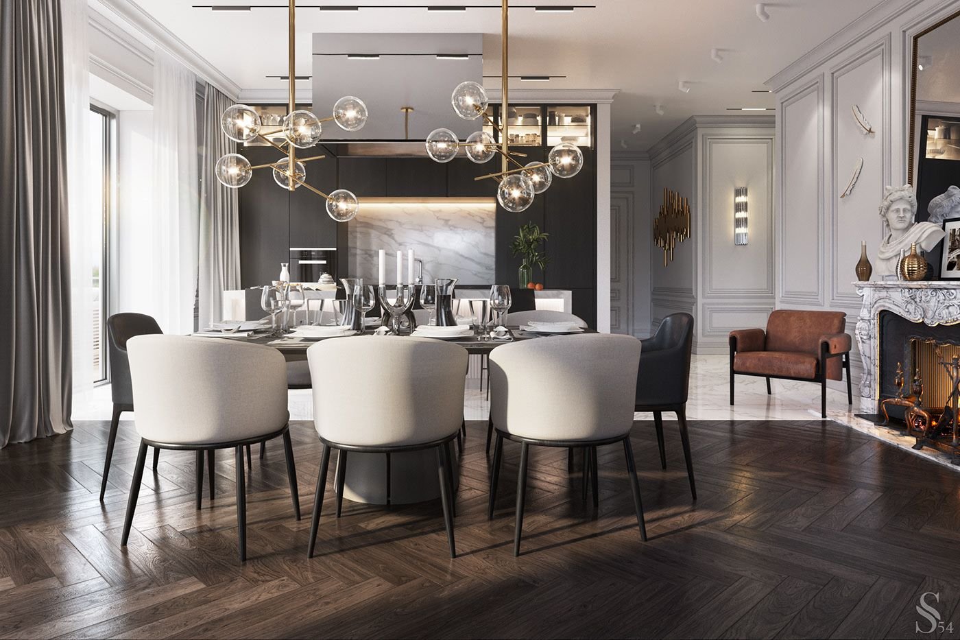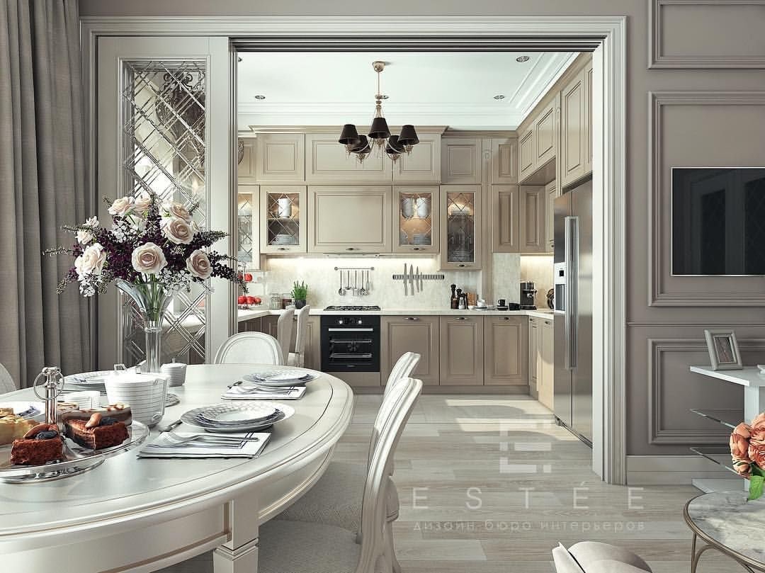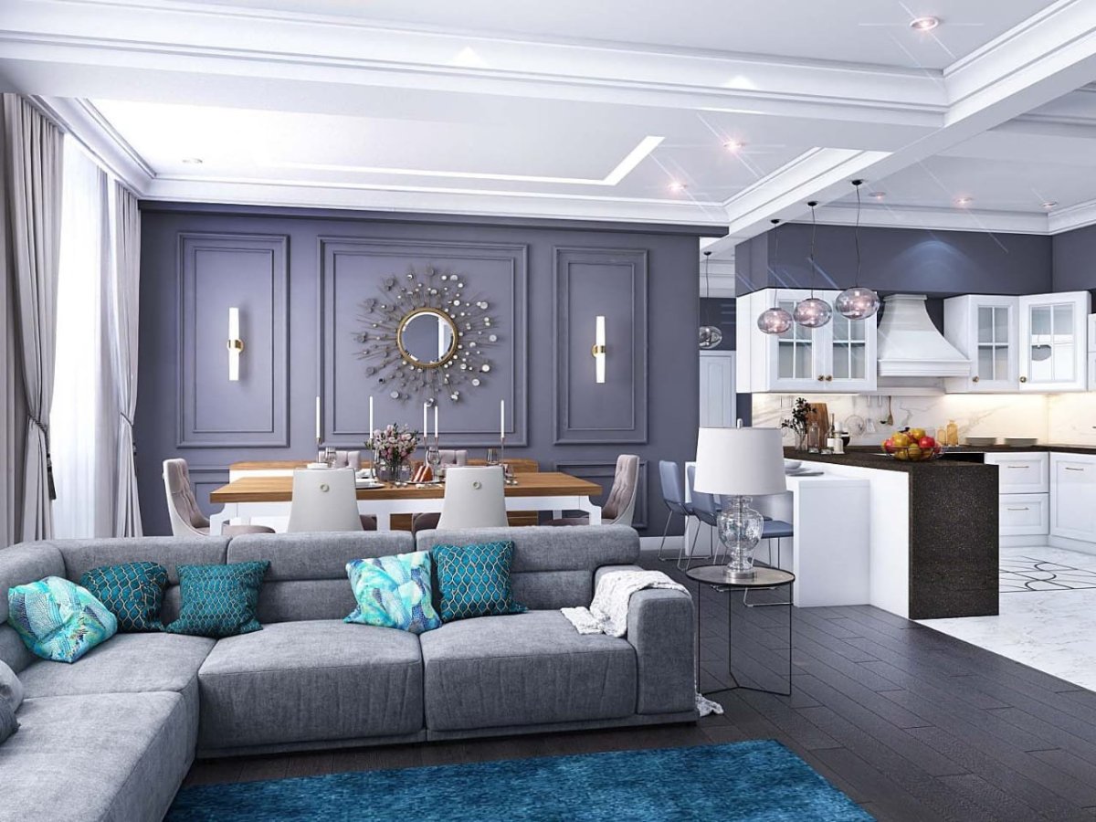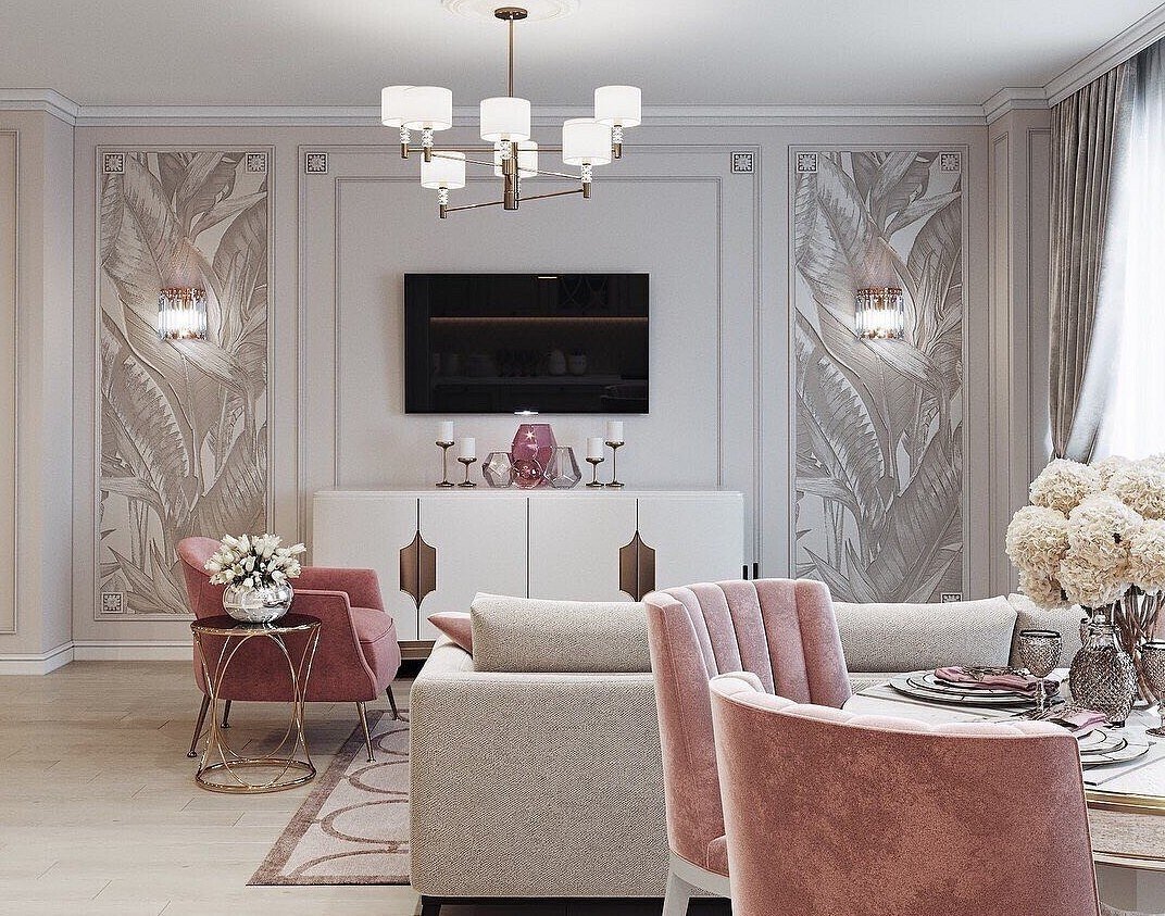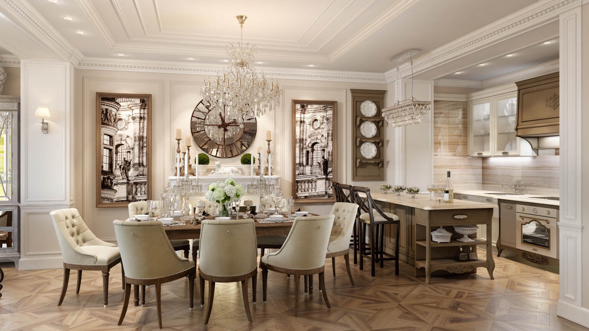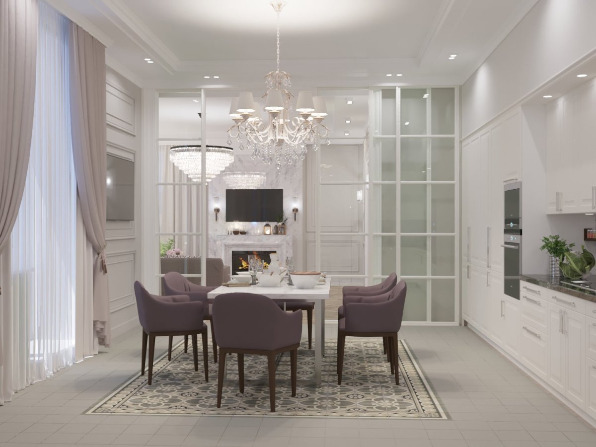 Гостиная совмещенная с кухней в стиле Неоклассика