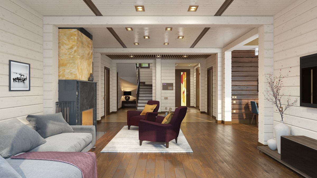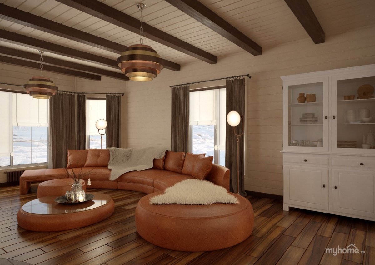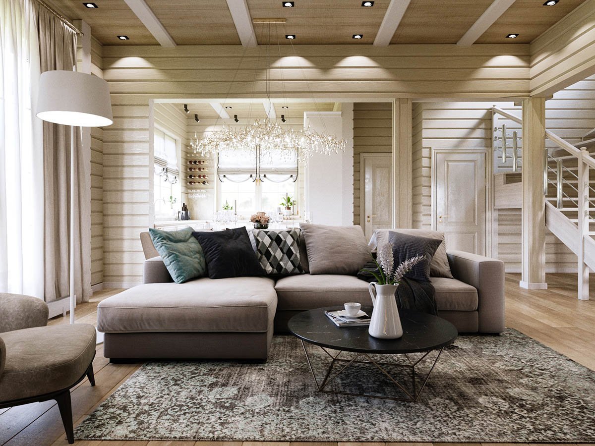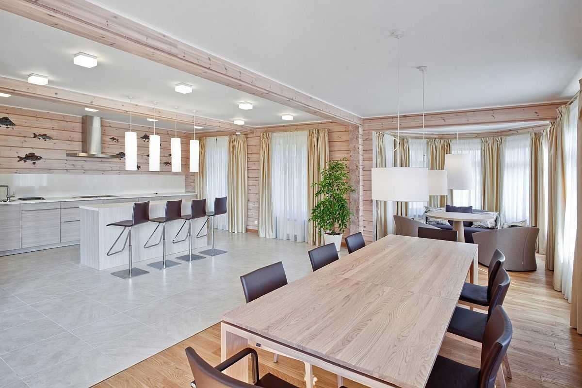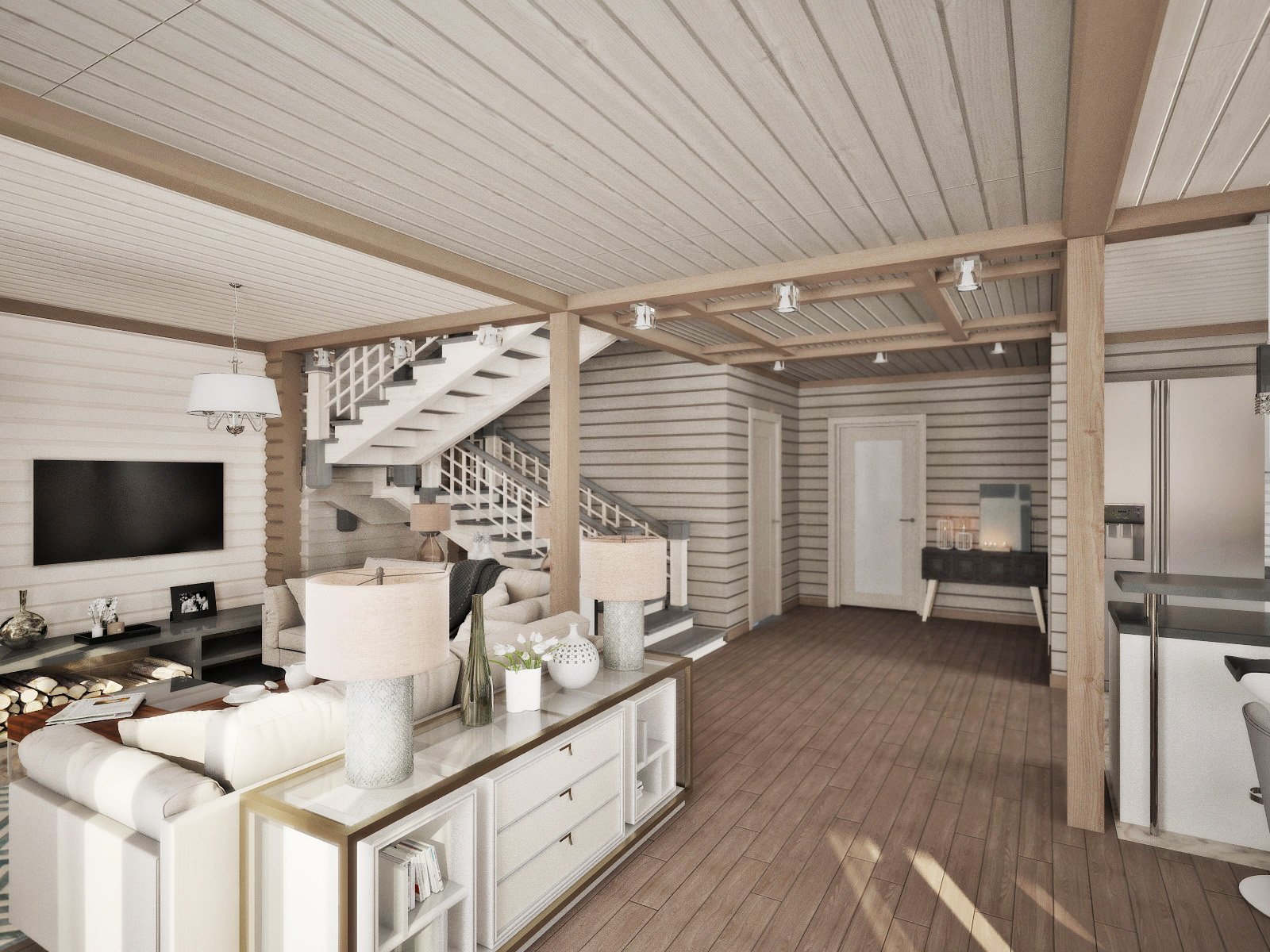 Интерьеры в домах из клееного бруса в скандинавском стиле