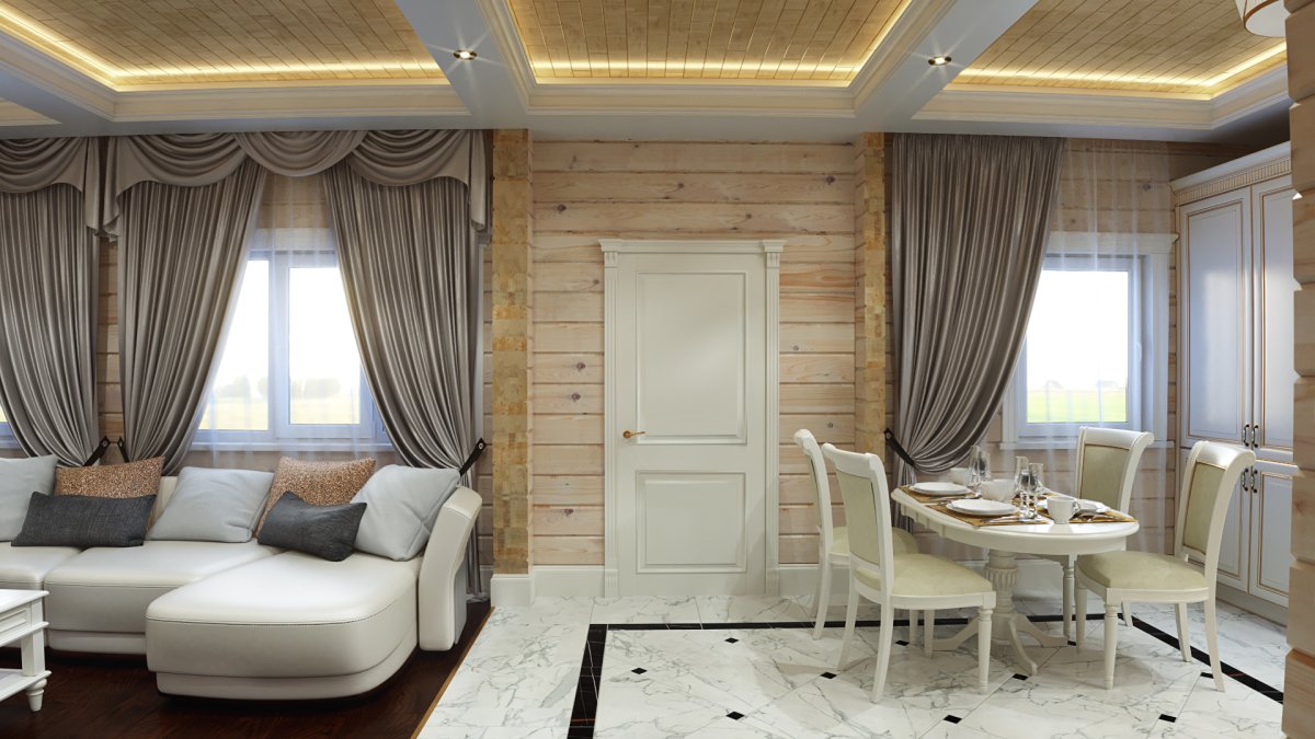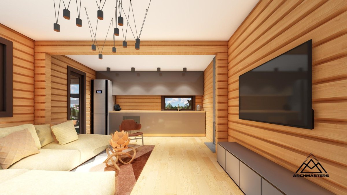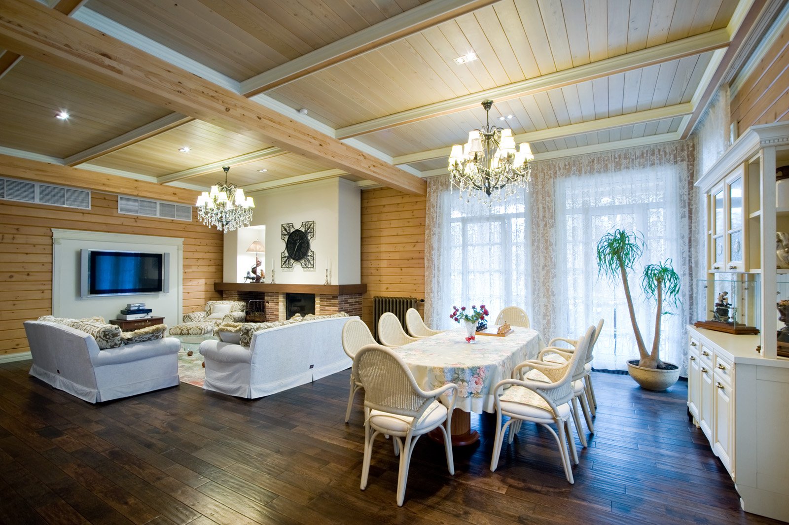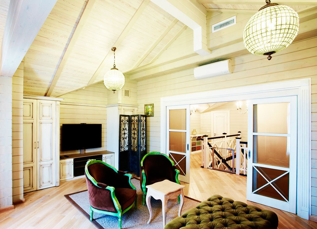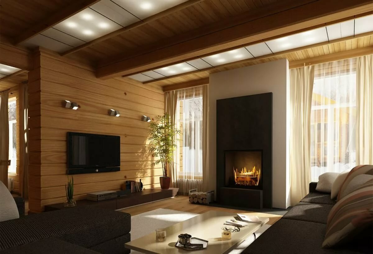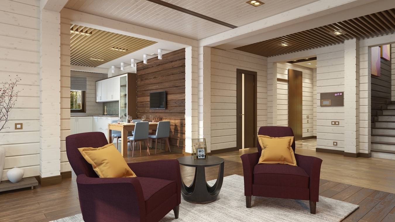 Интерьеры в домах из клееного бруса в скандинавском стиле