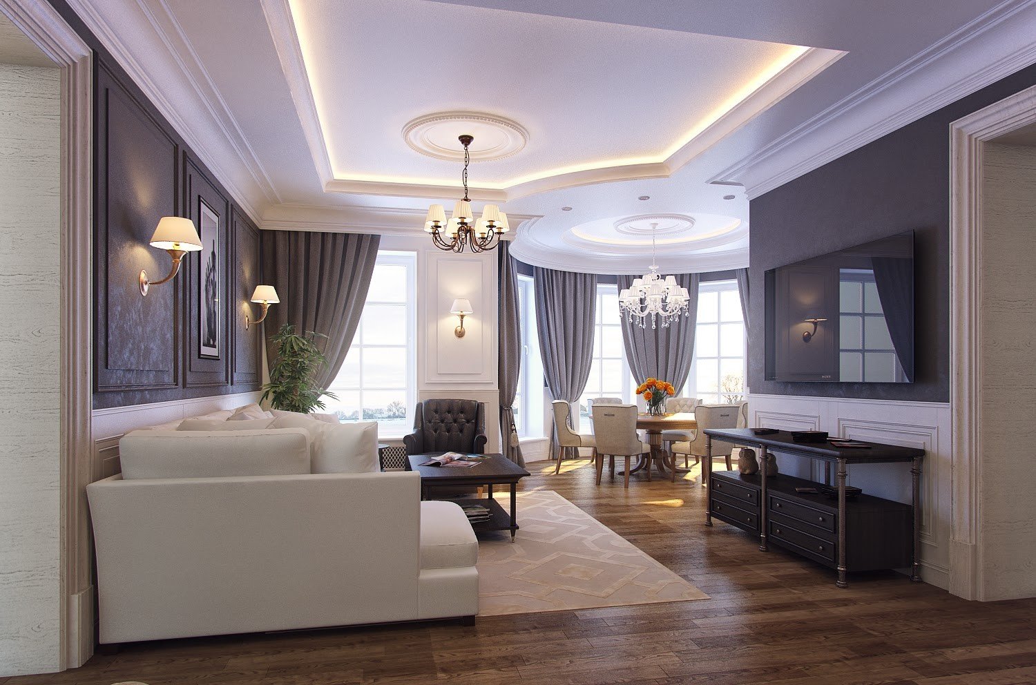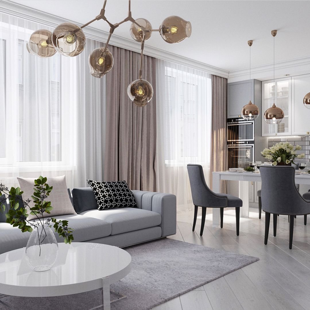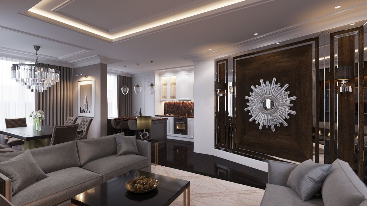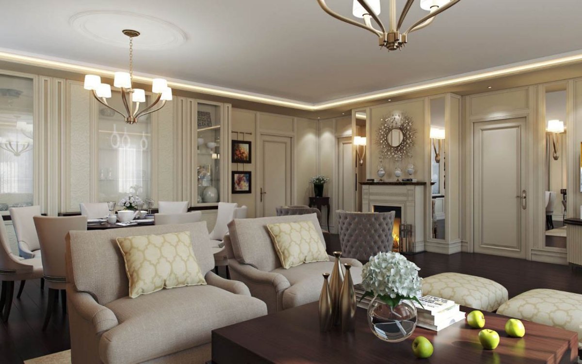 Гостиная столовая современная классика