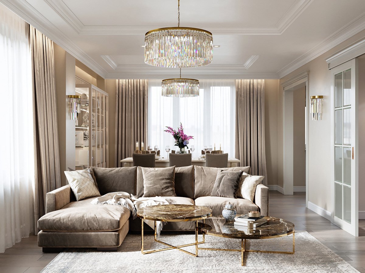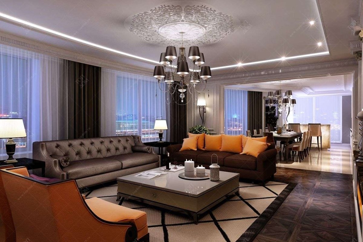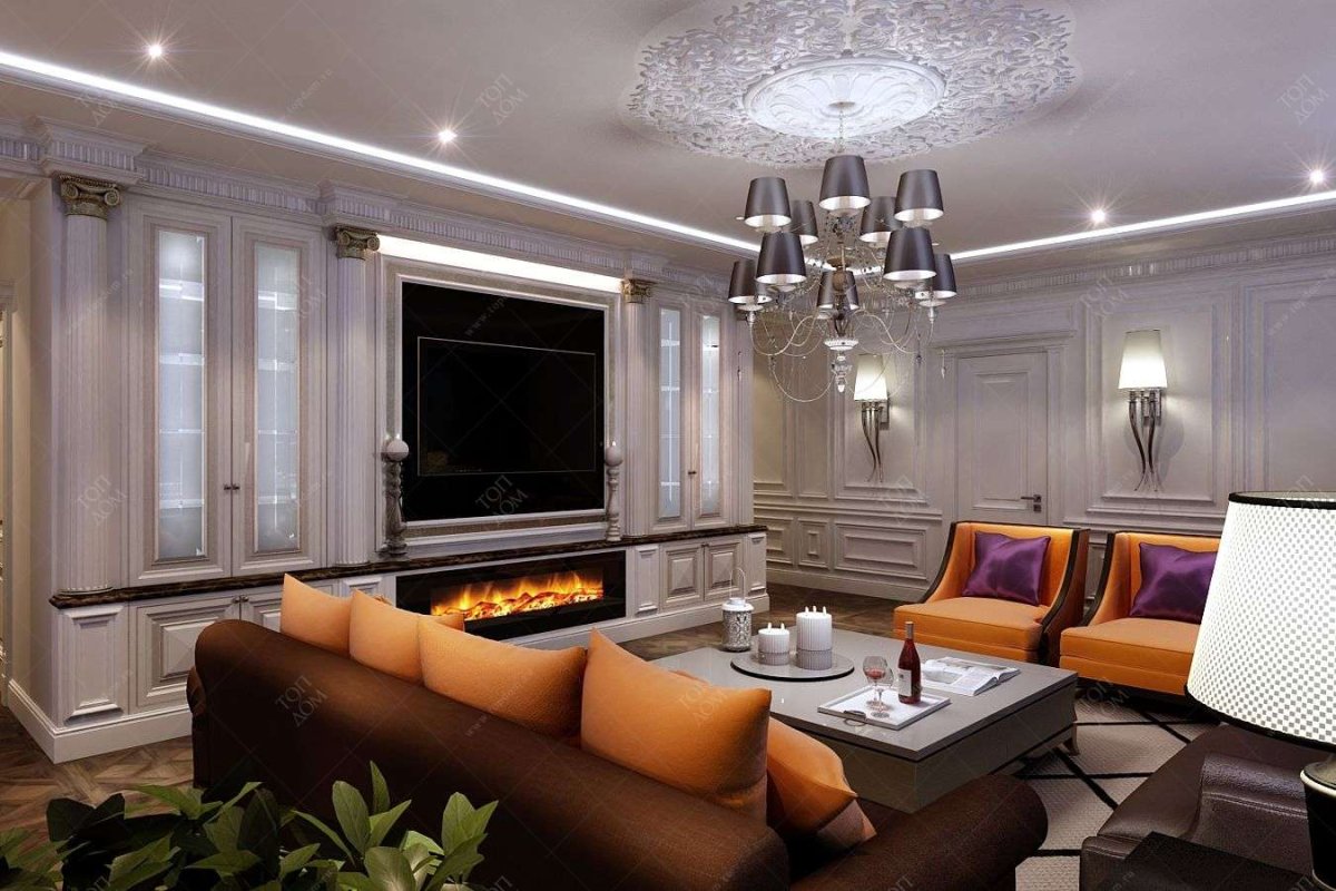 Классические люстры для гостиной в интерьере