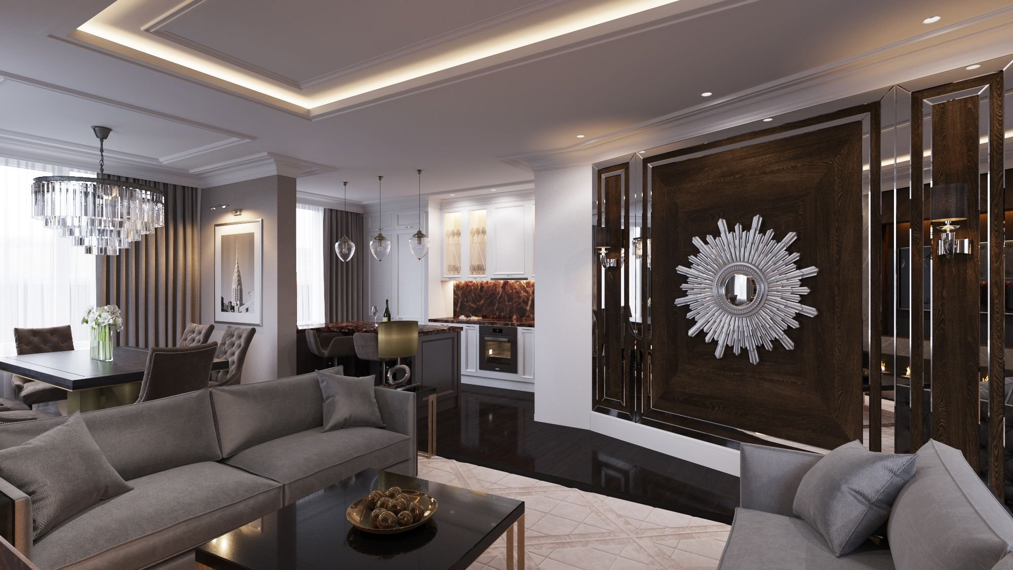 Люстра ар деко в неоклассическом интерьере