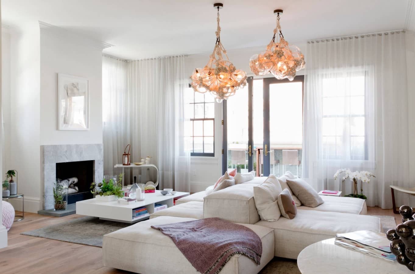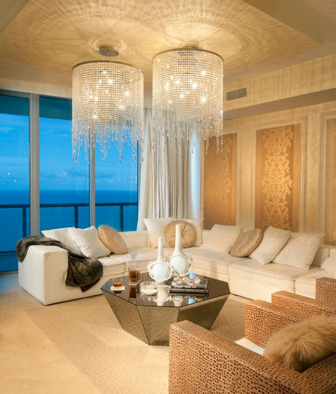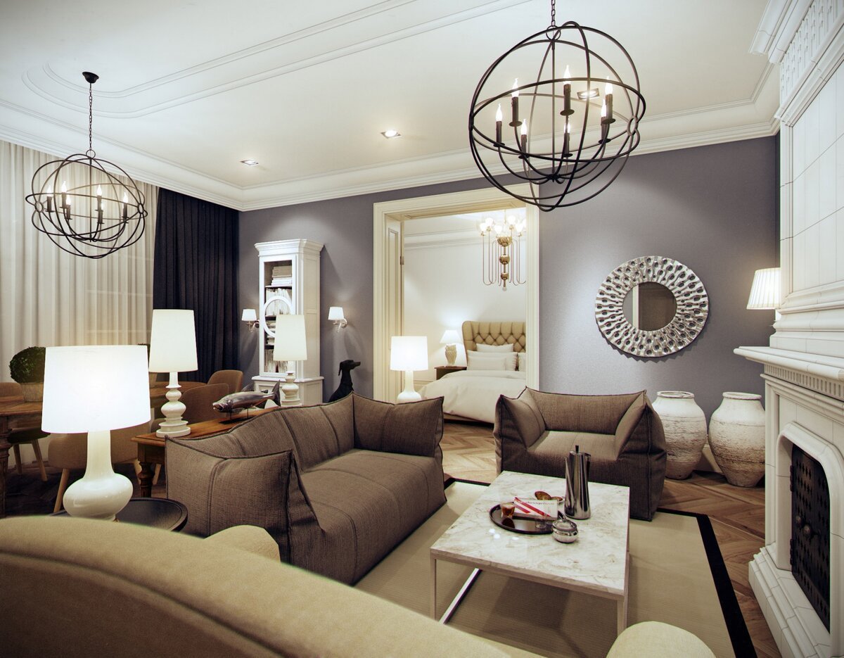 Две люстры в гостиной в интерьере